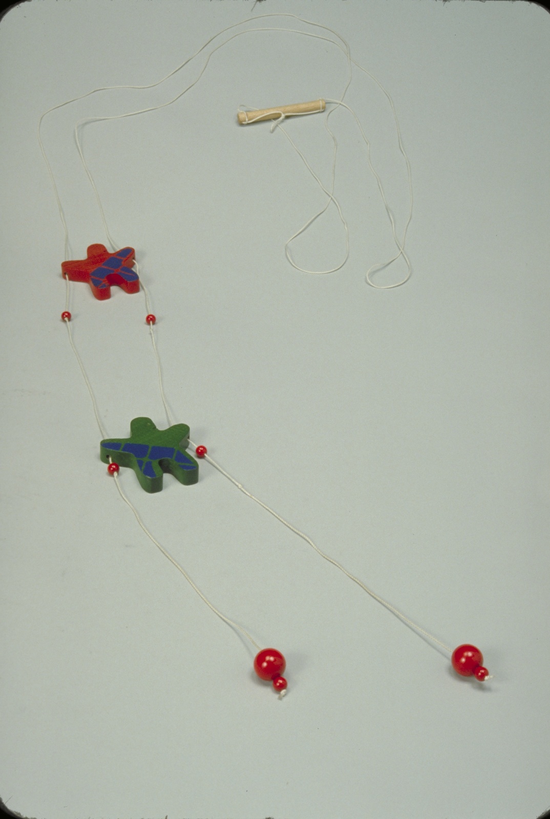 2本のヒモを交互に引っ張ると、2体の人形は上に昇っていく。適応年齢:3+