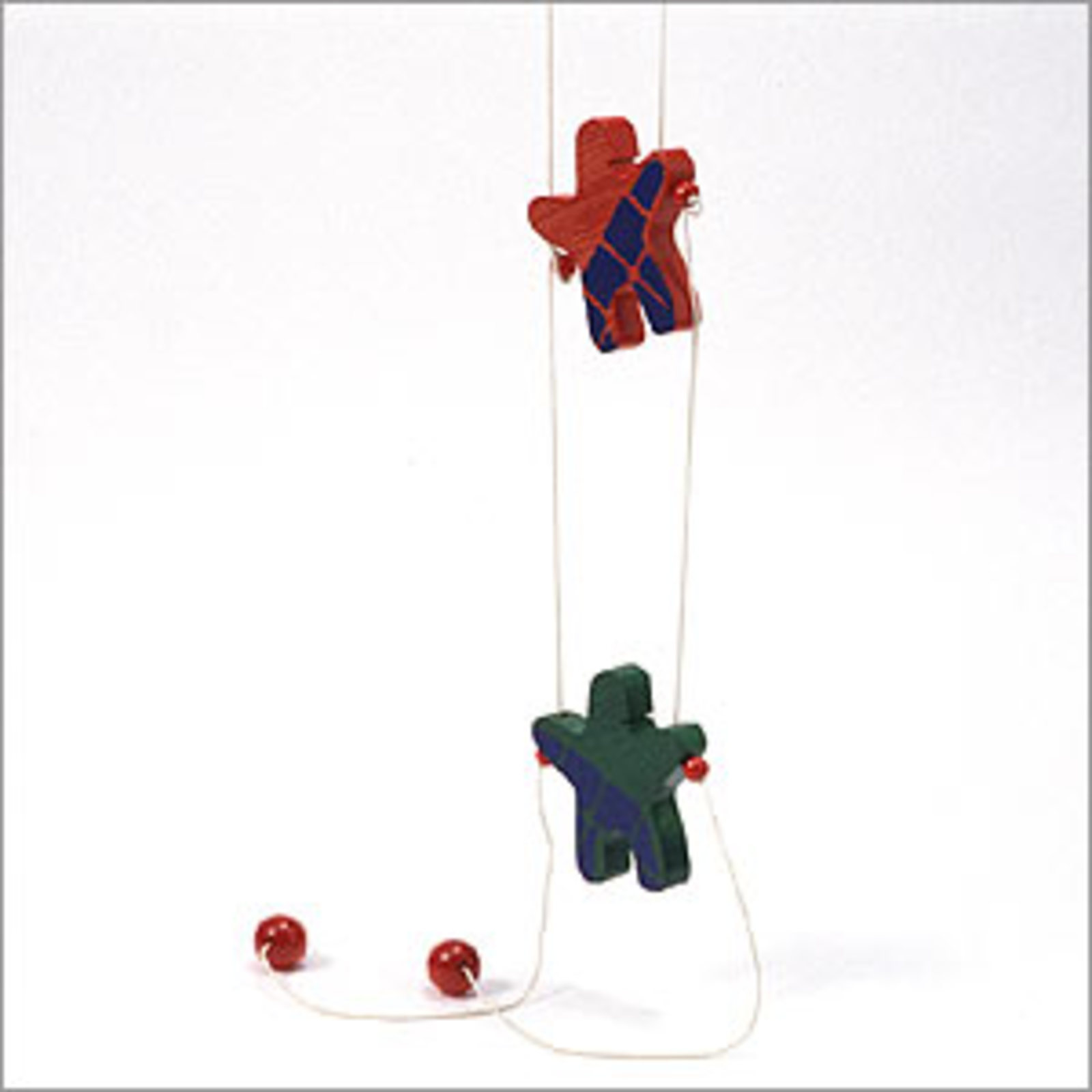 2本のヒモを交互に引っ張ると、2体の人形は上に昇っていく。適応年齢:3+ |
