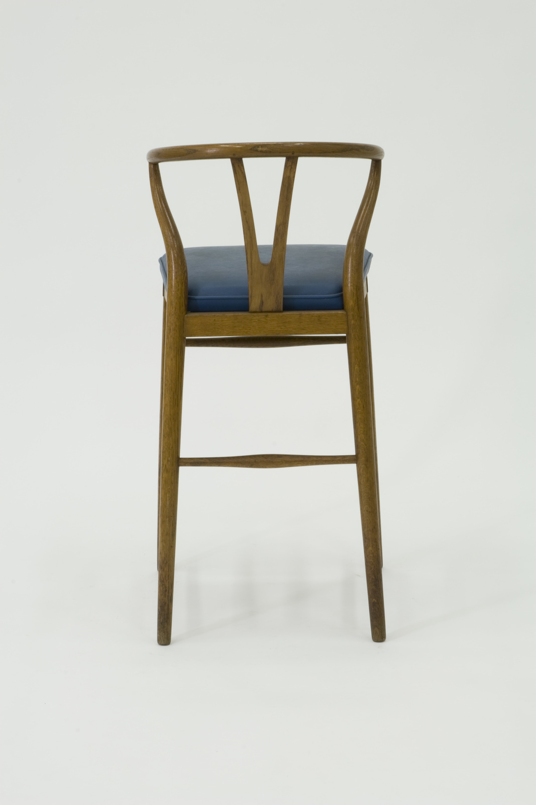 カール・ハンセン社でつくられているウィッシュボーン・チェア(別名,Y・チェア)のバリエーションとしてつくられた。きわめて珍しいバータイプの椅子である。Y・チェアがつくられたのは1950年で、この椅子はそのずっと後の1970年につくられたもの。座から上の構造とフォルムはY・チェアと全く同様だが、脚を長くして、前後の貫を補強してる。フットステップがないのは、おそらくこの椅子が置かれたバーカウンターの下の方に足置きが通っていたためと考えられる。シートはペーパーコード張りのY・チェアとは異なり革張りになっている。ある1軒のバーのためにつくられた特注品であったからであろう。
