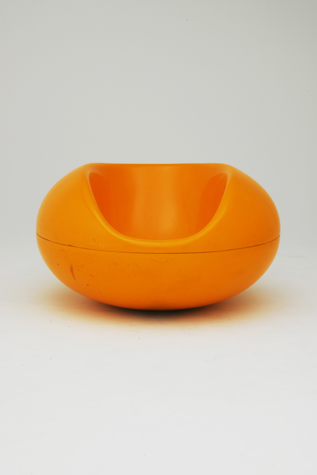 錠剤という意味を持つ「パスティリ」と呼ばれるこの椅子は、自由に形をつくることが可能なFRPを使ってつくられた椅子である。下半分は半球状で、上半分は後から被せられたものである。そのため中身は中空で、水に浮く。またスイングする椅子でもあり、遊び心のある椅子でもある。プラスチックという素材を迎えた新しい時代を上手く表現している椅子とも言えるであろう。元々椅子とは4本脚と考えられていたが、新しい素材であるFRPの出現により脚のない椅子として考え出された形である。