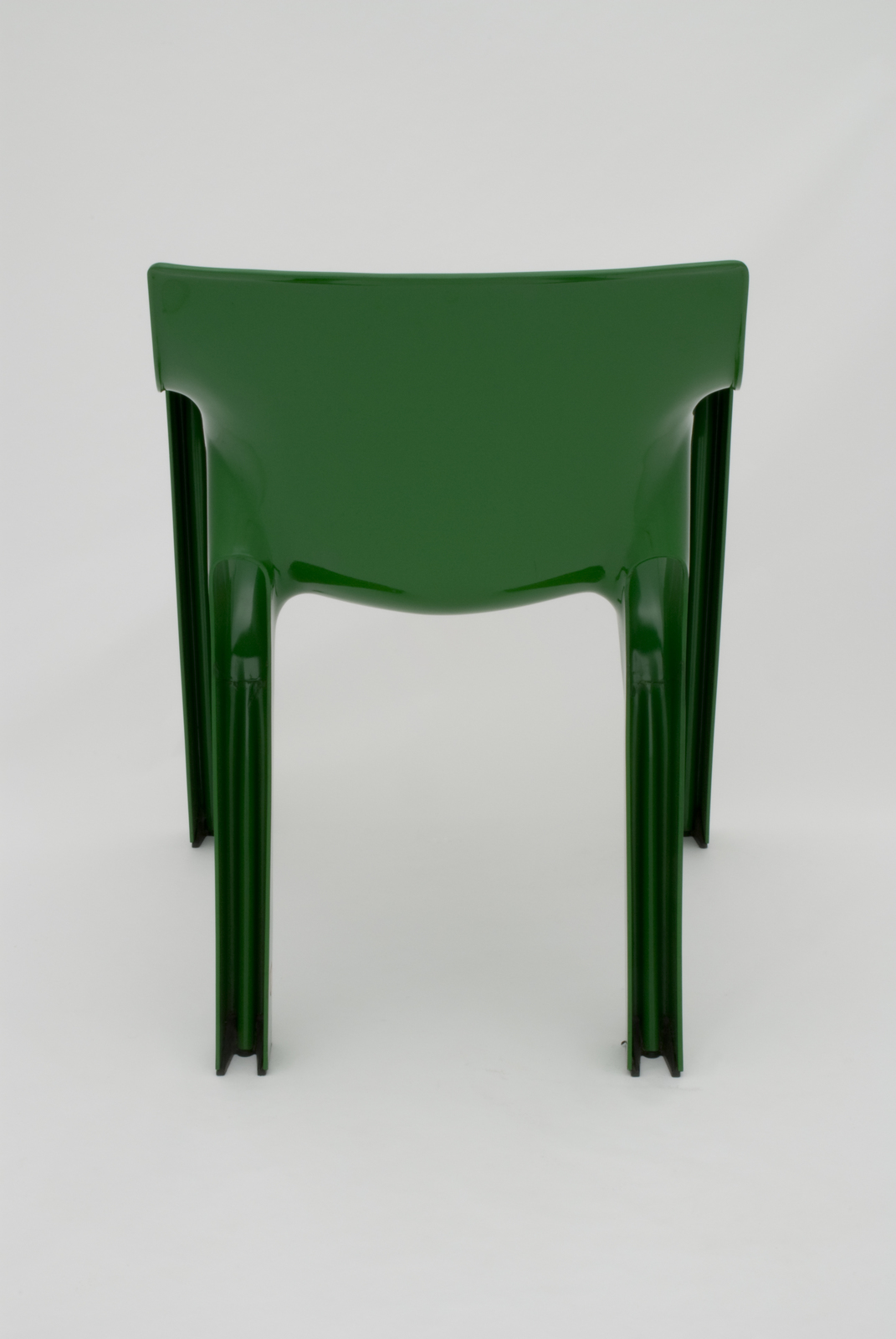 背から座そして脚部までもを一体化するためにプレス成形によるFRPでつくられた椅子である。脚部の断面形状はM字になっており、これがリブの役目も果たし安定度も増している。ヴィコ・マジストレッティは1960年代から常にイタリアデザインのトップランナーとしていくつもの優れた椅子や照明器具を発表している。フォルムの美しさだけではなく、機構の面白さ、新鮮さで高い評価を得ている。最近ではデンマークのメーカーから新しい椅子を発表している。 |
