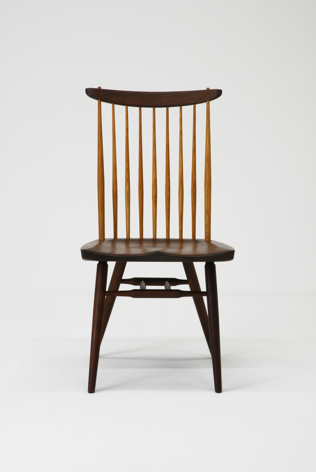 ミラーチェア(124、128)とほぼ同じ材料と構造である。4本脚でも貫が施されているのは、ミラーチェアの安定性に対する反省からであると考えられる。ジョージ・ナカシマの一連の作品と異なる点は、脚の付け根である座面に差し込む部分と貫の先端部分の加工が、2段彫りになっている点である。近代椅子のルーツともいえるイギリスのウインザーチェアからの影響を強く感じられるデザイン。独自の工房でクラフトマンシップを前面に出した、ジョージ・ナカシマらしい椅子。