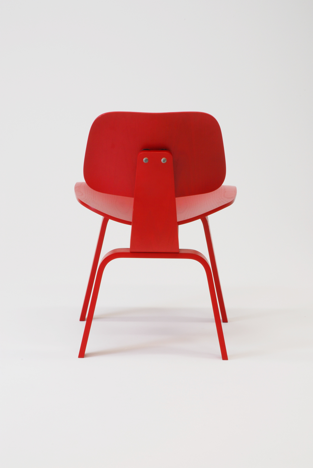 この椅子は2次曲線の成型合板からなる前脚と後脚、それと脚と背をつなぐ3つのフレームと3次曲面の座と背の2枚の人体支持面で構成されている。座と脚また背と背柱の接合部にはナットが埋め込まれたゴムが接着されており、ボルトで固定するようになっている。このゴムは座ったときの衝撃吸収材でもある。この椅子はのちにイームズの椅子を代表するスチールでできたDCM へと改良されてゆく。