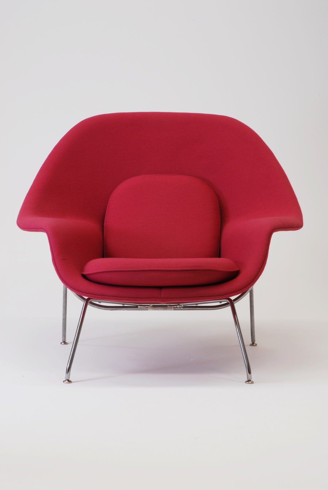 有機的な立体形態を求めるエーロ・サーリネンが、FRPによってつくることのできた豊かな量感を持った椅子。子宮という名を持つこの椅子は、あたかも女性の胎内にいるかのように安らぎのある大変座り心地の良い椅子といわれている。座と背は内部はFRPの一体成型で出来ており、張りぐるみで仕上げている。さらに座と背を柔らかいクッションを置くことによって快適性をよりいっそう深めている。座る人を大きく包むように囲い込む雰囲気を細い金属脚で軽快感をもって支えている。