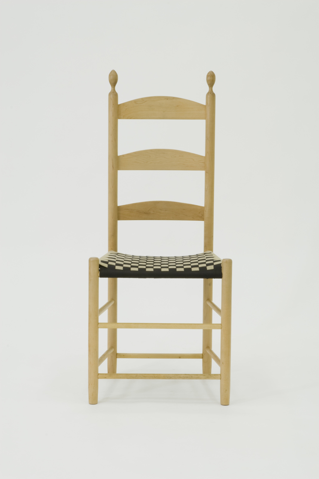 個人のためではなく、自分たちが所属する集団のために椅子を作るという目的から、自ずと手間がかからず、丈夫な椅子が生み出されることとなった。しかもシェーカー教徒が重んじた清貧という理念は、質を高めつつも虚飾を廃するという近代デザインの本質につながっていると言っていいだろう。私有財産が認められなかったシェーカーヴィレッジでは、そこで作られる家具はすべてが同じ形態で量産され、個人の趣向などはほとんど見られないのだが、座面を構成するテープの裏などの目立たない場所に作り手の名前が記されているものも見られる。 |