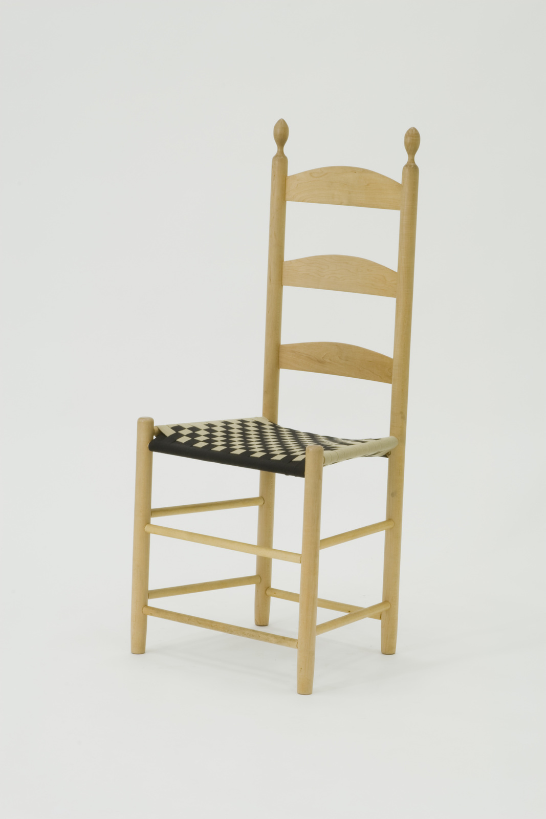 個人のためではなく、自分たちが所属する集団のために椅子を作るという目的から、自ずと手間がかからず、丈夫な椅子が生み出されることとなった。しかもシェーカー教徒が重んじた清貧という理念は、質を高めつつも虚飾を廃するという近代デザインの本質につながっていると言っていいだろう。私有財産が認められなかったシェーカーヴィレッジでは、そこで作られる家具はすべてが同じ形態で量産され、個人の趣向などはほとんど見られないのだが、座面を構成するテープの裏などの目立たない場所に作り手の名前が記されているものも見られる。