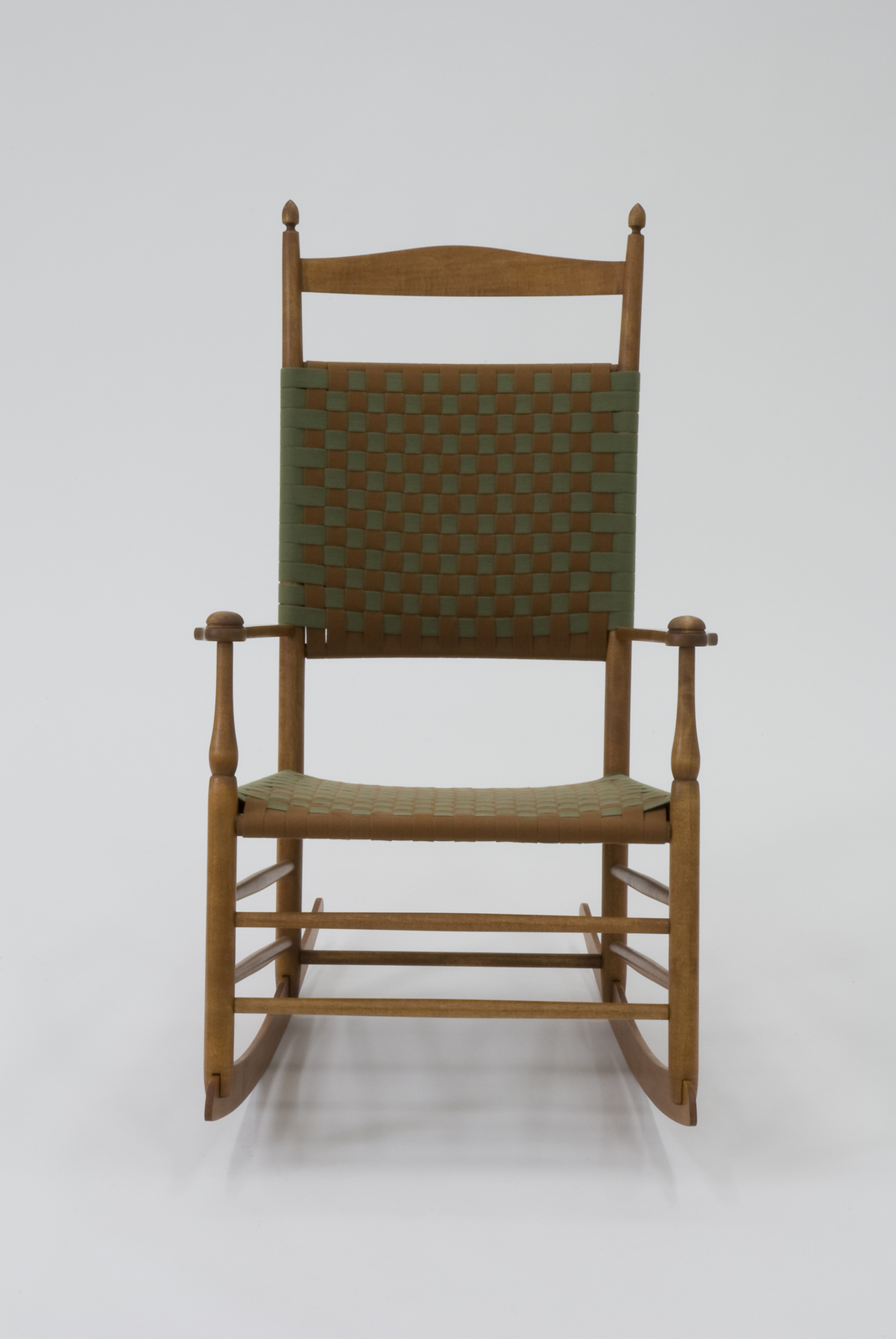 結婚制度を認めていなかったシェーカー教において高齢者は長老として敬われており、自ずからその介護を目的とする家具の需要があった。この椅子は、既存のシェーカーチェアの脚部をロッキングに作り替えたものであるので、ロッキングチェアでありながらも全体的に軽やかなつくりになっている。アームの先端にある半球状の突起物はマッシュルームと呼ばれており、アームの先に手を置いたときに掌が収まりよくなるように作られたものである。またハイバックのロッキングチェアであり、背に渡されている板はヘッドレストであると同時に、構造上「貫」の役割も果たしている。