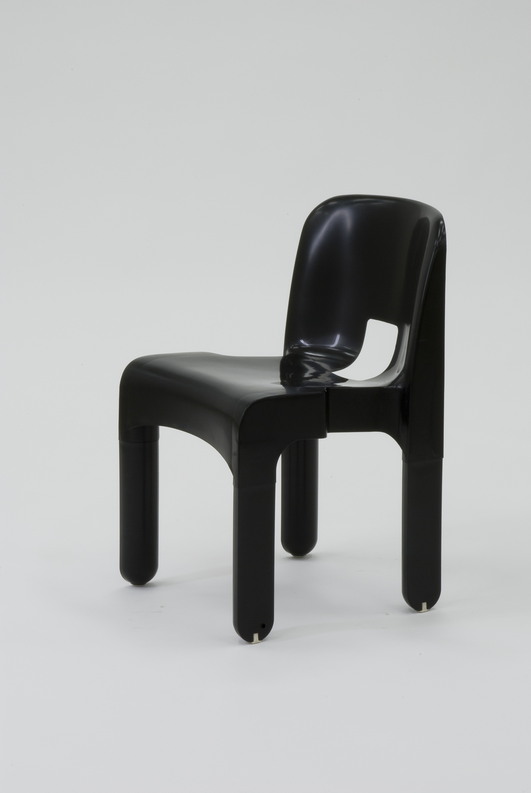 ジョエ・コロンボは1930年ミラノに生まれ二つの美術系学校を経て、プラスチック等の新素材を用いた数々の作品を発表している。そのなかでもこの椅子は、彼の代表作として知られており、1970年に「金のコンパス賞」を受賞している。椅子全体をABSで成形されているので軽量で、スタッキングも可能である。また、脚部をネジや工具を用いずに、はめ込むだけで組立が可能であるため、商品管理や輸送にも優れている。その他にも、長さの異なる脚に差し替えてハイスツールにすることもできる。 |