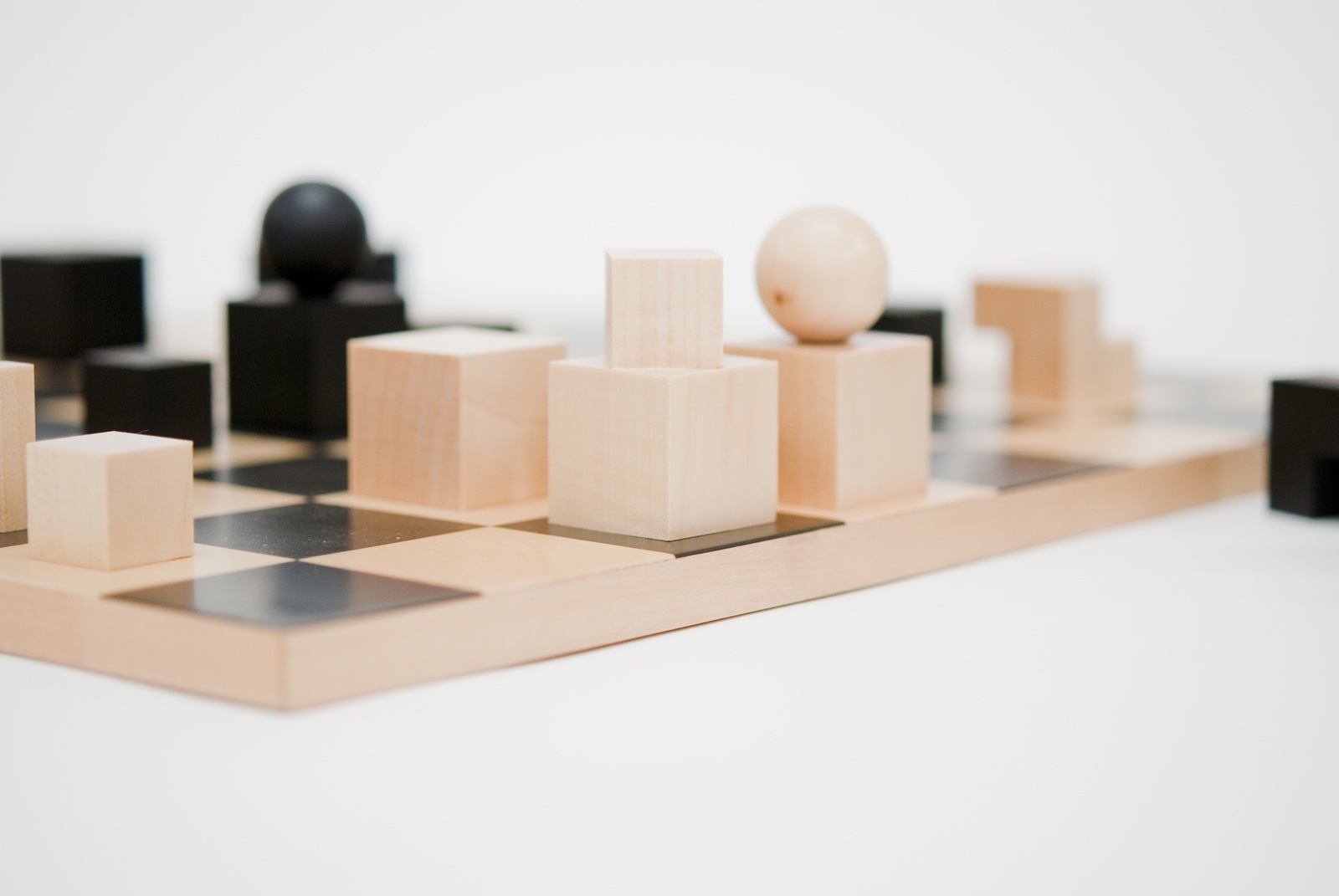 バウハウスでデザインされたチェスのコマと共にチェスゲームの際に使う。適応年齢:8+ |
