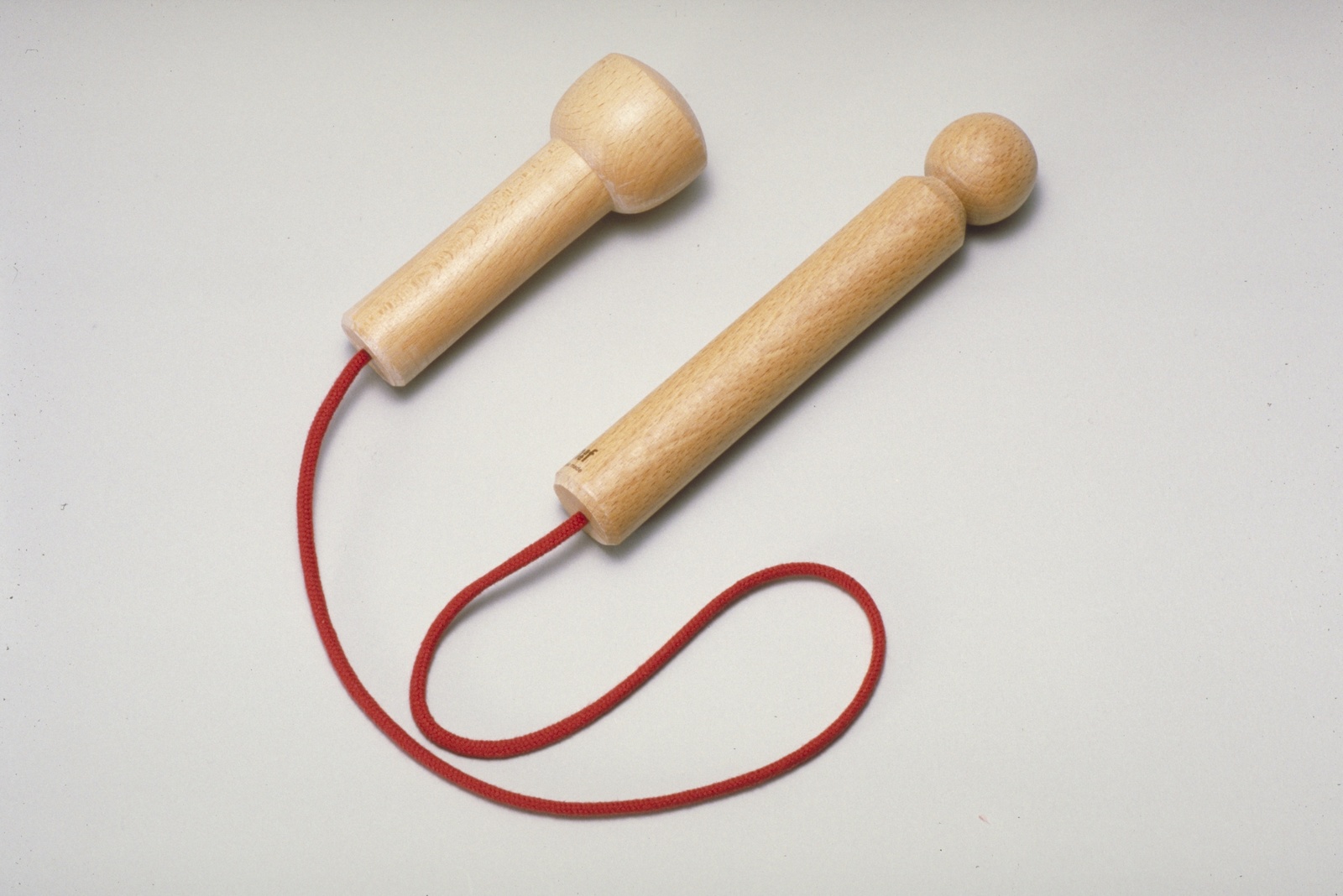 ひもでつながれた2個のスティックをたたいて、様々な音やリズムを楽しむ。適応年齢:4+ |