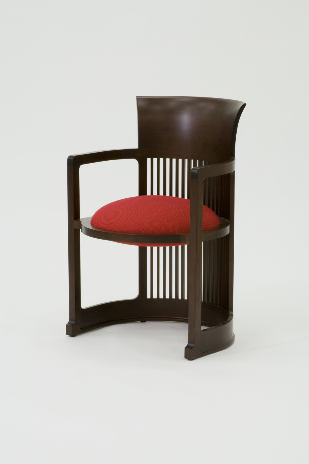 20世紀最も偉大な建築家のひとりに数えられるライトが、もともとマーティン邸のためにデザインした椅子を、その後何度かリデザインした。この椅子はハーバード・F・ジョンソン邸のためにデザインされたものである。その名(バレル=樽)の通り丸く重厚感溢れる造形である。 |