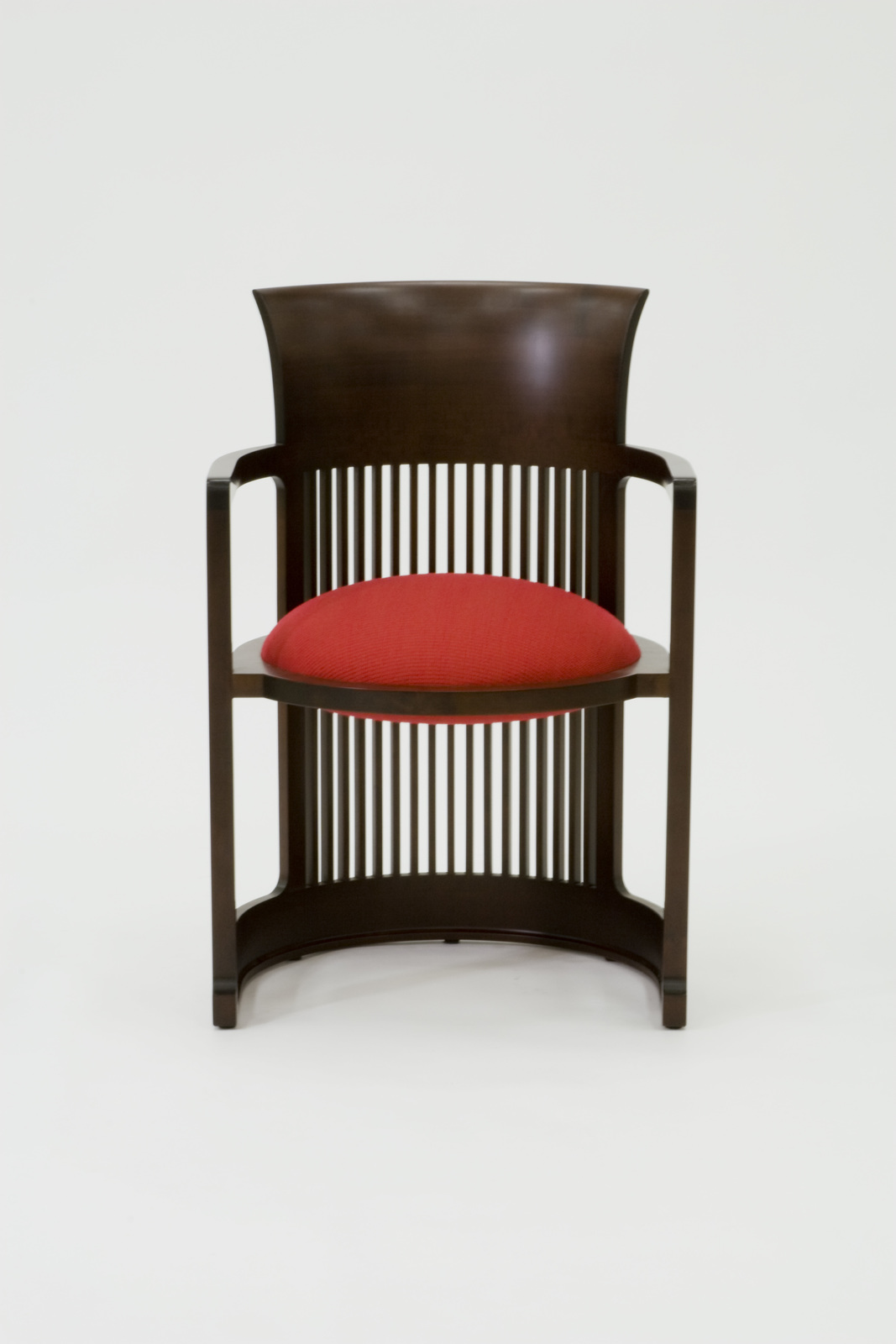 20世紀最も偉大な建築家のひとりに数えられるライトが、もともとマーティン邸のためにデザインした椅子を、その後何度かリデザインした。この椅子はハーバード・F・ジョンソン邸のためにデザインされたものである。その名(バレル=樽)の通り丸く重厚感溢れる造形である。 |