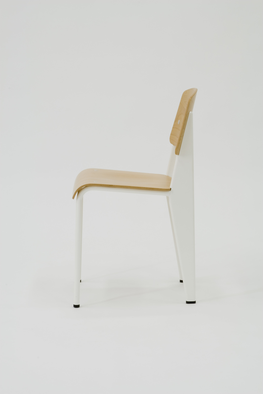 ナンシー大学のコンペにあわせてデザインされたもので、プルーヴェによる椅子のなかでも代表的な存在である。この特徴的な後脚は、人が座ったときにどこの部分に力が加わるのか、という構造力学から帰結したデザインと言われている。 |