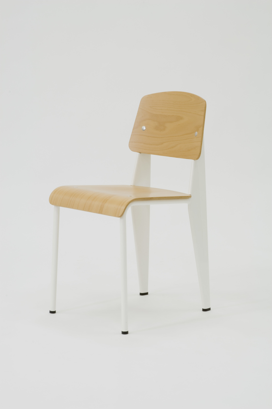 ナンシー大学のコンペにあわせてデザインされたもので、プルーヴェによる椅子のなかでも代表的な存在である。この特徴的な後脚は、人が座ったときにどこの部分に力が加わるのか、という構造力学から帰結したデザインと言われている。 |