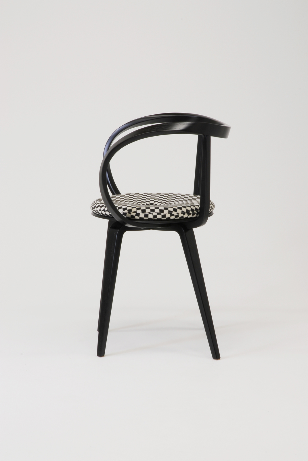 アーム部分の捻れた形状が、ちょうどドイツのパンと似ているのが名の由来であろう。ジョージ・ネルソンは二本の指でも持ち上げられるような軽量化を目標としていて、ついにこの椅子で実現したという。オリジナル版はたった1年で製造中止となったが、1986年より再製造されている。 |