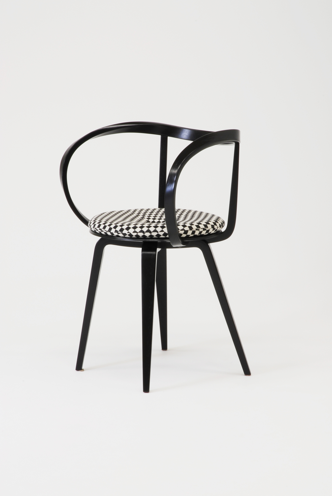 アーム部分の捻れた形状が、ちょうどドイツのパンと似ているのが名の由来であろう。ジョージ・ネルソンは二本の指でも持ち上げられるような軽量化を目標としていて、ついにこの椅子で実現したという。オリジナル版はたった1年で製造中止となったが、1986年より再製造されている。 |