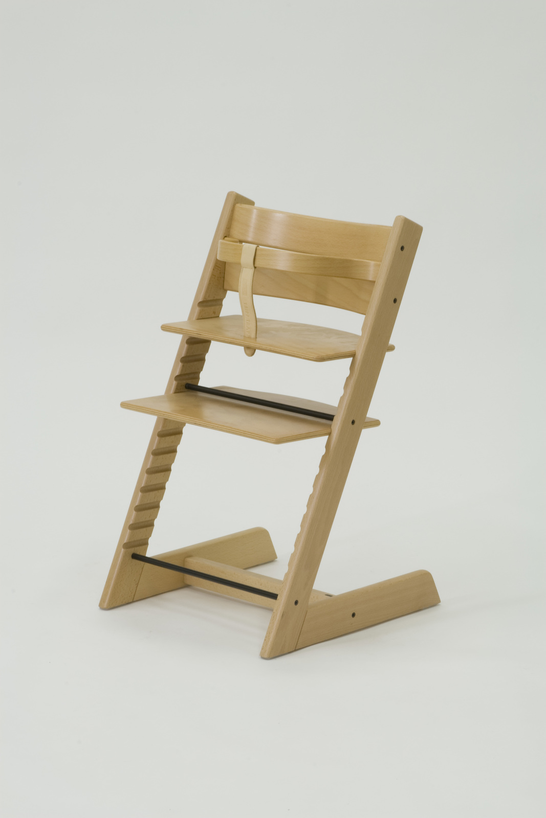 子供の成長に合わせて、脚の高さや背の高さを変えられるようにした椅子。 幼児期では椅子から落ちないように囲いの部材がついており、子供が成長してゆくと不要になるため、取り外せるようになっており、長い期間使用できる。 |