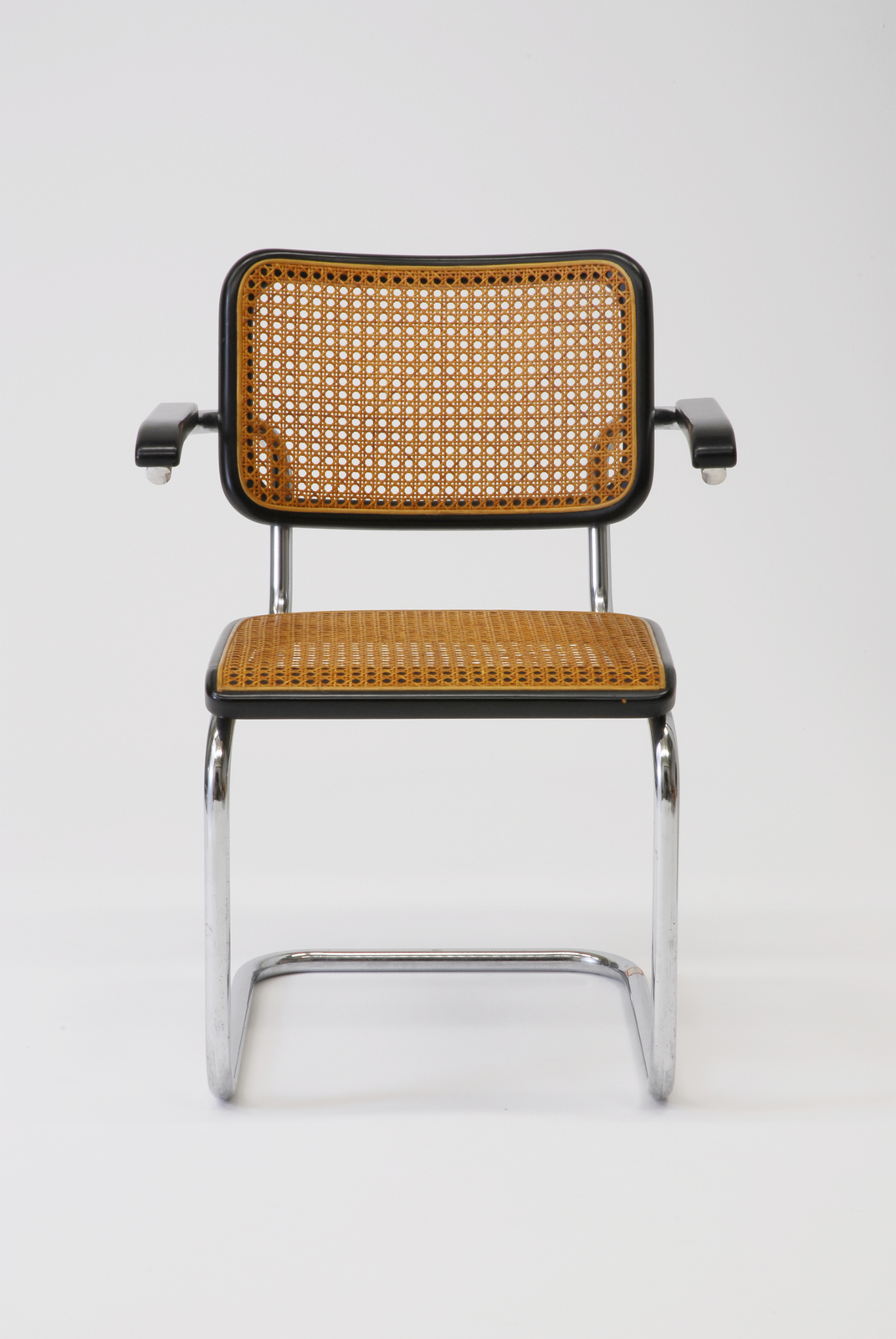 チェスカという名の由来はマルセル・ブロイヤーの娘の名前からと言われている。前脚2本のカンティレバー構造で、金属パイプによってつくられ、金属パイプの強度と弾力性という二点をうまく利用している。ブロイヤーは生活の道具として愛着が持てるものをどのようにつくるべきかを考えた。黒く塗装した十分な太さの木枠に籐を張り、色のコントラストを見せ金属パイプの固い雰囲気を和らげる効果を示した。このことで新素材であった金属パイプに対する当時の人々の反発は取り除かれ、受け入れられるようになった。 |