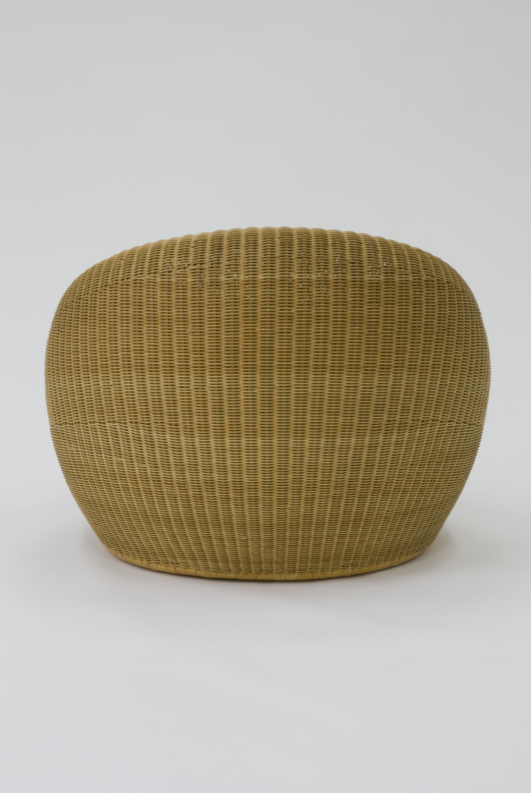 快適な座り心地が得られる椅子で、東南アジアのラタンを使用し、その材料は自由な曲線や局面をつくることができ、通気性に富んだ大変軽いものである。本体のフレームは太い太民籐を構造体とし、それを籐芯で編み込み、この椅子は美しい曲面をつくりだしている。剣持勇が1960年代に発表した一連の籐の椅子の中での代表的なものでニューヨーク近代美術館で永久展示品となっている。 |
