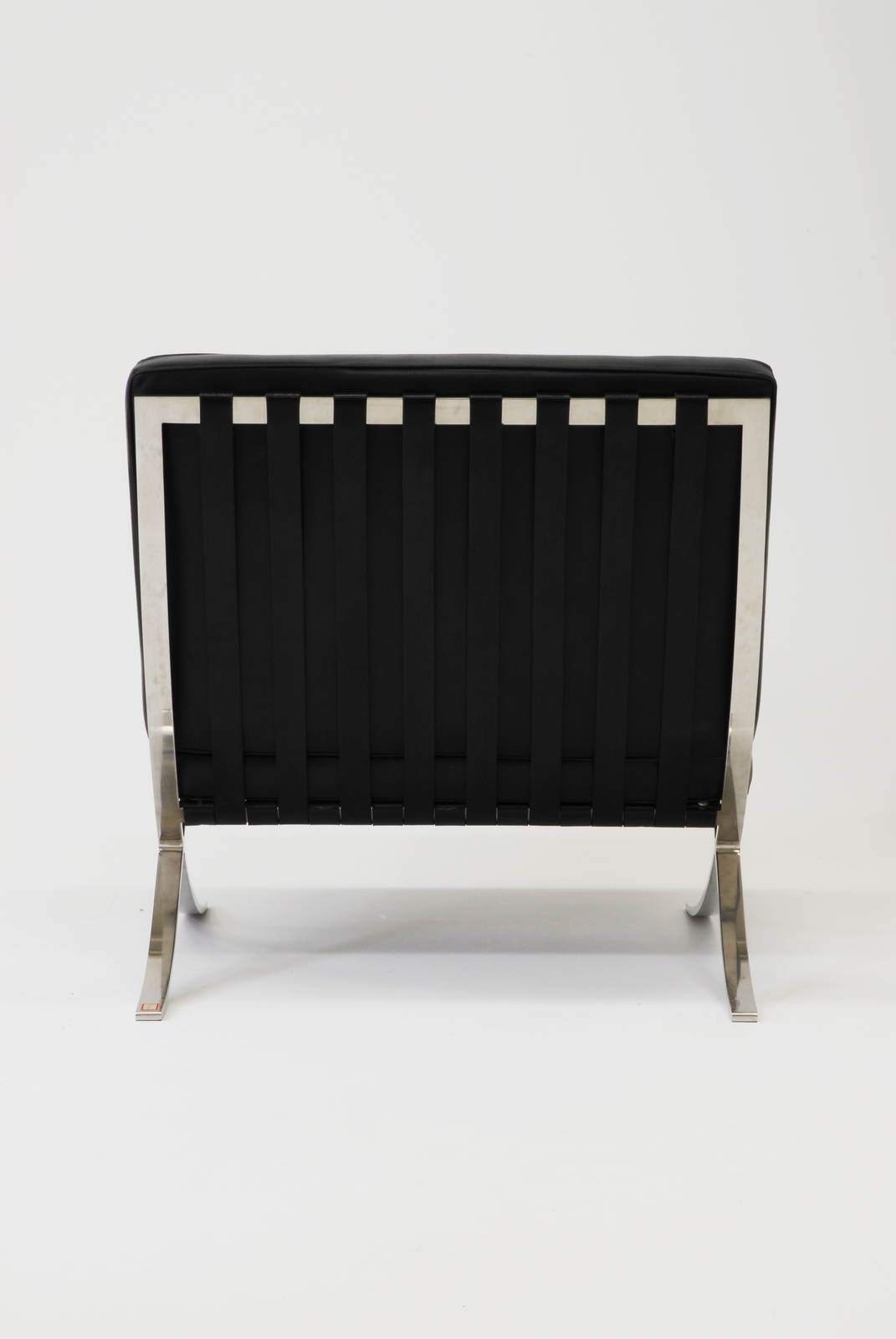 1929年のバルセロナ万国博覧会で、ミースが設計したドイツ館に来館するスペイン国王がくつろげるように、そしてその空間とも合った高級感あふれる椅子を目指してデザインされた。構造としては非常にシンプルであり、X型に組み合わされた金属のフラットバーの上に浮くようにして革でキルティングした座と背のクッションがのっている。一見単純に見えるが、金属の溶接や仕上げ方法、クッションを支えるためにバーに革ベルトをまわしてその上にクッションをのせるというような仕組などは大変な手間とコストがかかっている。しかしその存在感は素晴しく、横から見た背のカーブが円弧状になっているところなど造形性の面でも優れている。だが当初の目的であるスペイン国王はドイツ館を訪問しなかったといわれている。