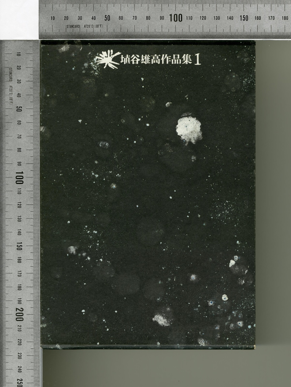杉浦の初期ブックデザイン、全集デザイン。以降の胎動を予感させるような、緊張感にみちた静寂に包まれる。 『埴谷雄高作品集』の題字を飾る、きらめく星のような小カットは、駒井哲郎のエッチングに由来するもの。異なる15の光を放つ。 装画=駒井哲郎 一、静寂なる脈動 (黒と白) |