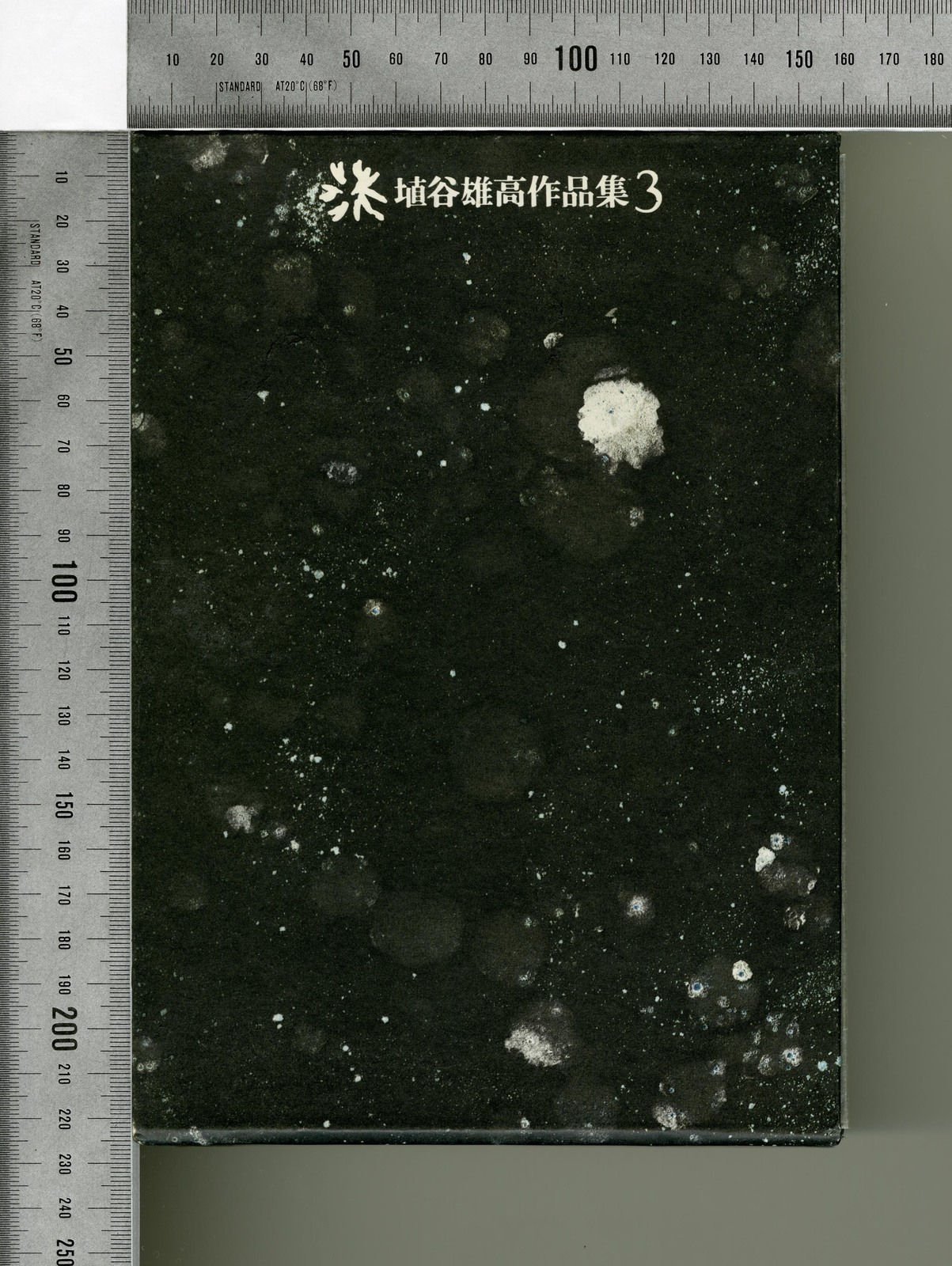 杉浦の初期ブックデザイン、全集デザイン。以降の胎動を予感させるような、緊張感にみちた静寂に包まれる。 『埴谷雄高作品集』の題字を飾る、きらめく星のような小カットは、駒井哲郎のエッチングに由来するもの。異なる15の光を放つ。 装画=駒井哲郎 一、静寂なる脈動 (黒と白) |
