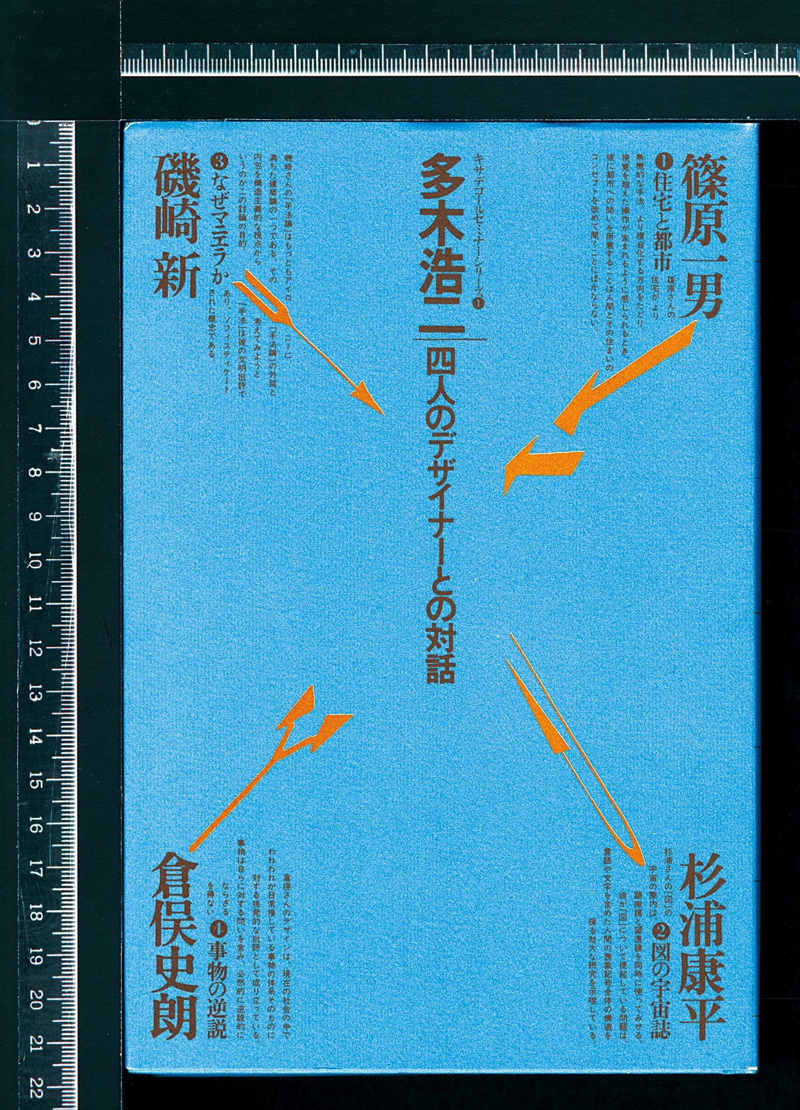第1巻は、杉浦自身をふくむ、多木浩二によるもの。4人の対話者の本文頁は、それぞれに異なる色紙が用いられた。本の小口の色変化を意識した、地層学的発想の最初期の試み。