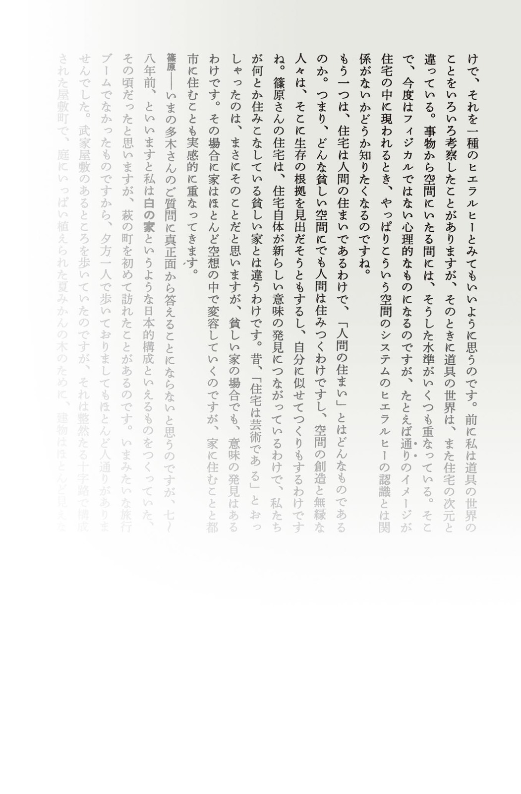 ひとりのインタビュアーによる、4~5人の建築家・デザイナーとの公開対談を記録したシリーズ。先端を走る創作者たちの、「現場の今」の声を伝える。