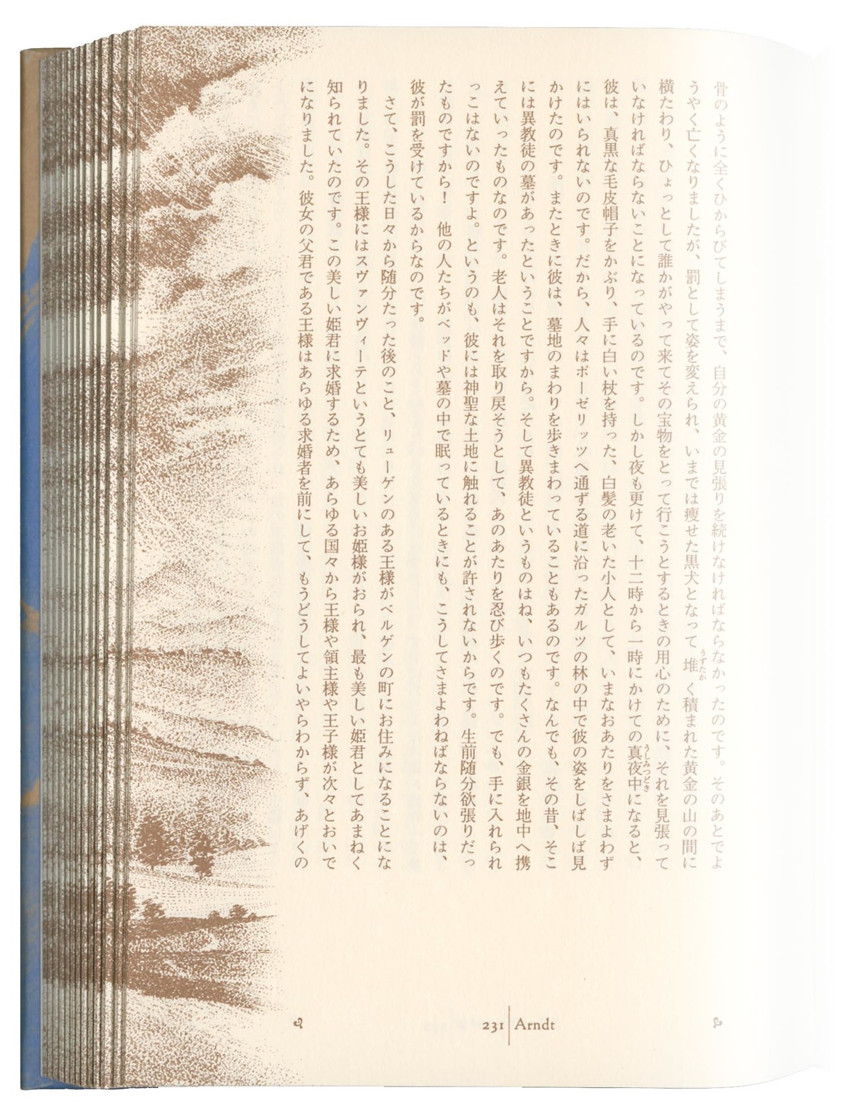 同じ出版社による先行の『世界幻想文学大系』が、マニエリスム的であるとすれば、本シリーズは、まさにロマン主義的なるもの。フリードリッヒなど、ドイツ象徴派が描きだす神秘的な自然を主題としてデザインされた。 峻険なアルプスの山容、黒い森の幽玄、北の海の潮騒、霧や靄、オーロラなど、ただならぬ気配を描く渡辺冨士雄のイラストが、本文ページ、小口側に配された。第一期10巻の最終巻として、別巻『ドイツ・ロマン派画集』も刊行された。 協力=鈴木一誌+大竹左紀斗+佐藤篤司 二、ゆらぎ・うつろう シリーズ全集|(囲み枠)+(図) 本文|小口が(リズム)を刻む 本文|小口に(地層)を滲ませる |