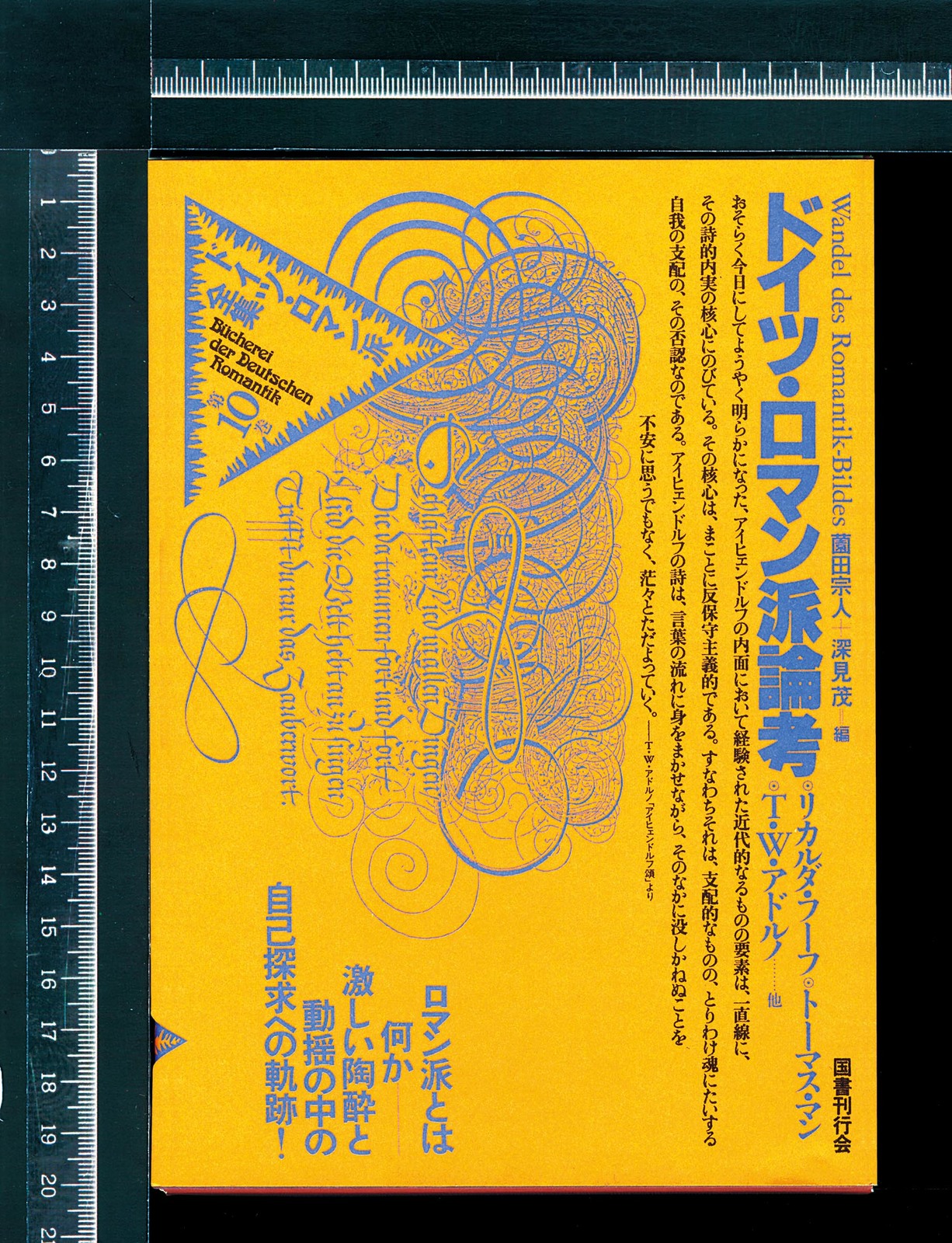 同じ出版社による先行の『世界幻想文学大系』が、マニエリスム的であるとすれば、本シリーズは、まさにロマン主義的なるもの。フリードリッヒなど、ドイツ象徴派が描きだす神秘的な自然を主題としてデザインされた。 峻険なアルプスの山容、黒い森の幽玄、北の海の潮騒、霧や靄、オーロラなど、ただならぬ気配を描く渡辺冨士雄のイラストが、本文ページ、小口側に配された。第一期10巻の最終巻として、別巻『ドイツ・ロマン派画集』も刊行された。 協力=鈴木一誌+大竹左紀斗+佐藤篤司 二、ゆらぎ・うつろう シリーズ全集|(囲み枠)+(図) 本文|小口が(リズム)を刻む 本文|小口に(地層)を滲ませる |