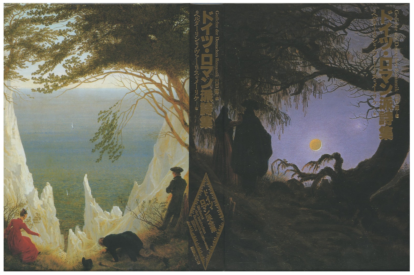 同じ出版社による先行の『世界幻想文学大系』が、マニエリスム的であるとすれば、本シリーズは、まさにロマン主義的なるもの。フリードリッヒなど、ドイツ象徴派が描きだす神秘的な自然を主題としてデザインされた。 峻険なアルプスの山容、黒い森の幽玄、北の海の潮騒、霧や靄、オーロラなど、ただならぬ気配を描く渡辺冨士雄のイラストが、本文ページ、小口側に配された。第一期10巻の最終巻として、別巻『ドイツ・ロマン派画集』も刊行された。 協力=鈴木一誌+大竹左紀斗+佐藤篤司 二、ゆらぎ・うつろう シリーズ全集|(囲み枠)+(図) 本文|小口が(リズム)を刻む 本文|小口に(地層)を滲ませる |