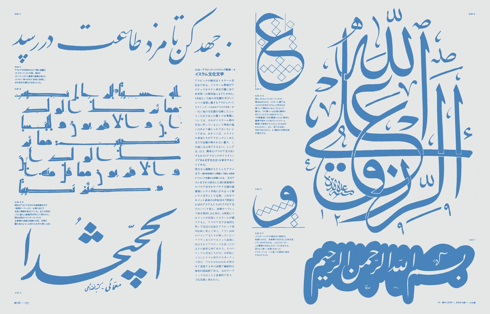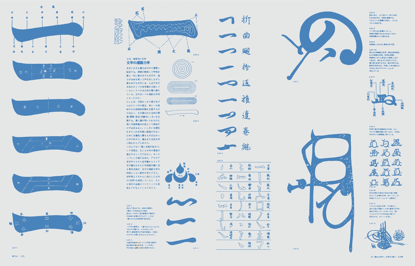 本文レイアウトの背後には、周到に用意されたグリッドシステムが隠れこみ、微細な図像にいたるまで、その大きさ、位置、ネームとの関係……などを支配している。真の意味で、「実験」の名で呼ぶことができる出版物。