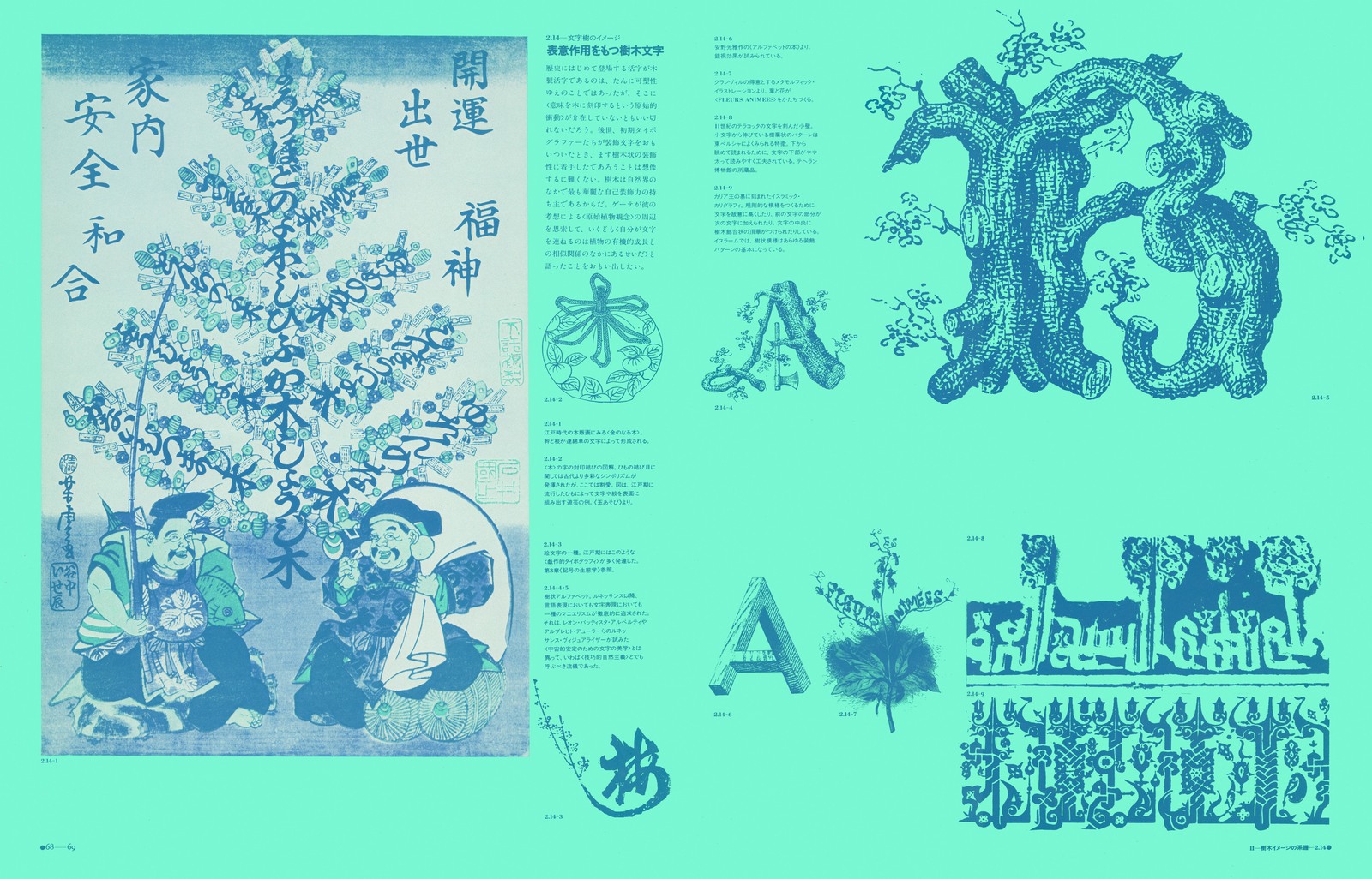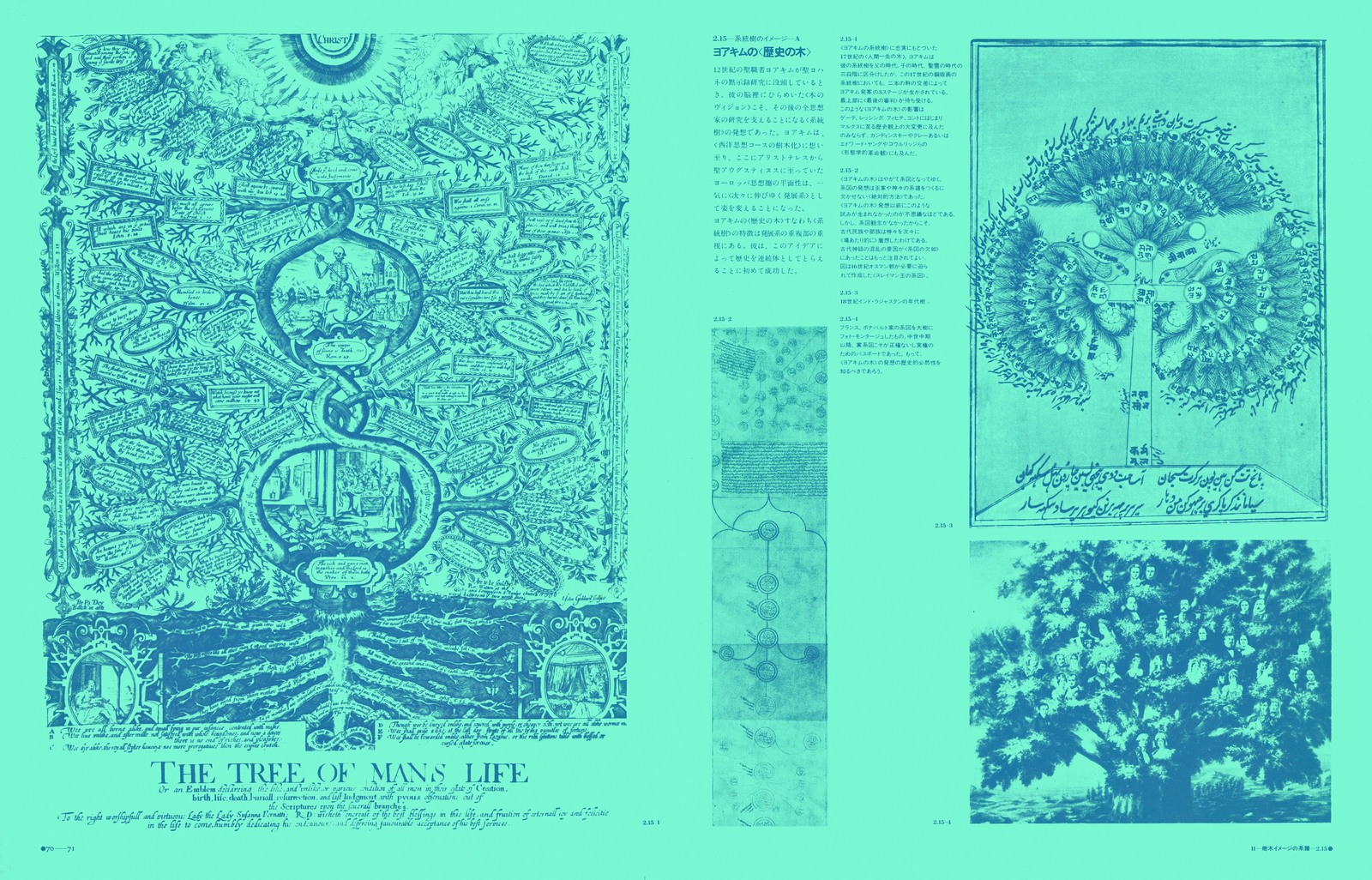 各章ごとに異なる地色が配され、白を背景とする紙面は1ページも無い。めまいするほどに詰めこまれた図像群は、近代デザインの語法が忘れ去ってしまったもの。その一つ一つが、宇宙の森羅万象に眼をとどかせようとする、人類の図像的想像力の結晶である。松岡のテキストが、各図が語る内容を、絶妙に結びつける。