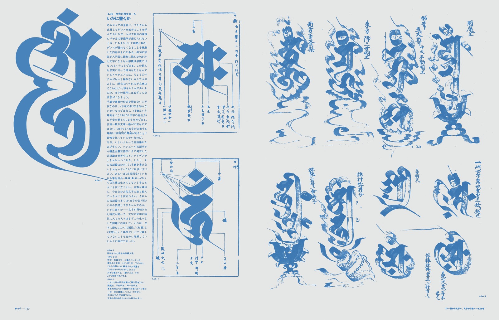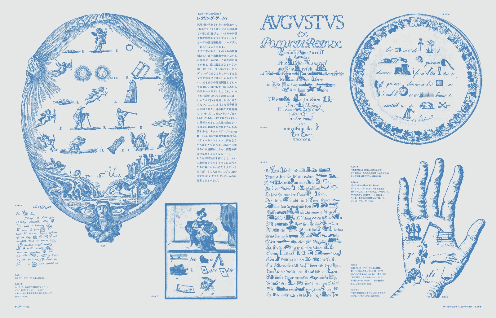 本文レイアウトの背後には、周到に用意されたグリッドシステムが隠れこみ、微細な図像にいたるまで、その大きさ、位置、ネームとの関係……などを支配している。真の意味で、「実験」の名で呼ぶことができる出版物。