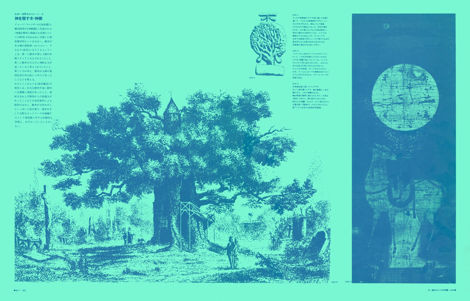 各章ごとに異なる地色が配され、白を背景とする紙面は1ページも無い。めまいするほどに詰めこまれた図像群は、近代デザインの語法が忘れ去ってしまったもの。その一つ一つが、宇宙の森羅万象に眼をとどかせようとする、人類の図像的想像力の結晶である。松岡のテキストが、各図が語る内容を、絶妙に結びつける。