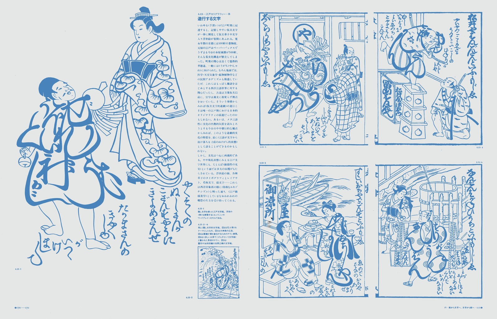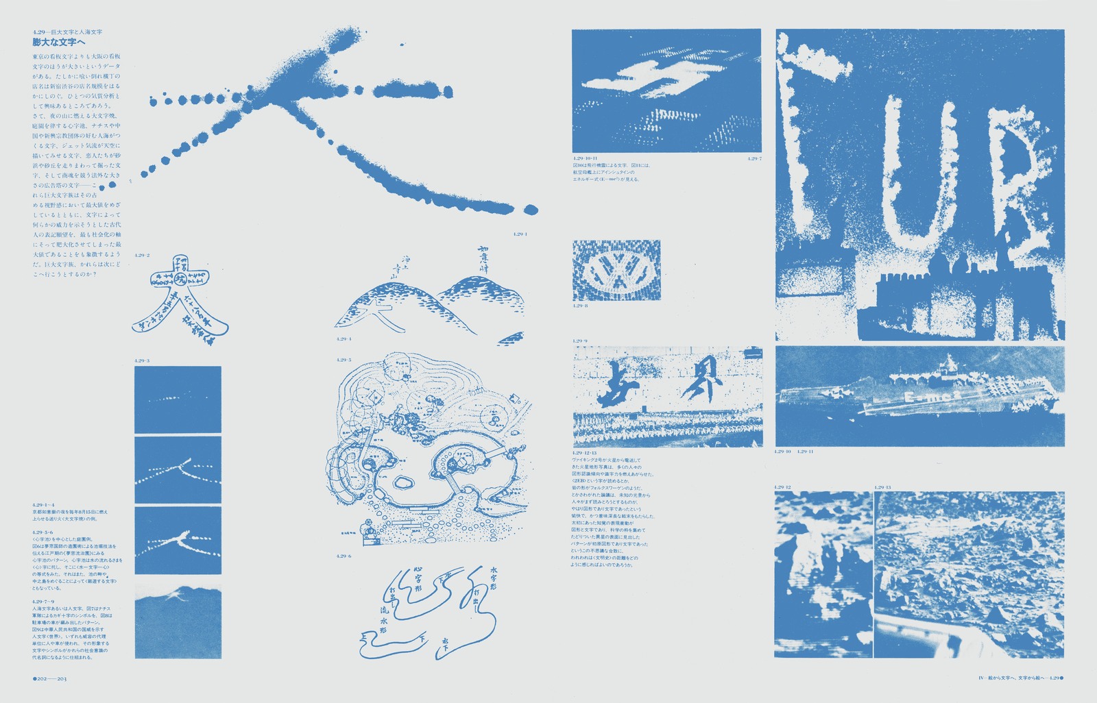 本文レイアウトの背後には、周到に用意されたグリッドシステムが隠れこみ、微細な図像にいたるまで、その大きさ、位置、ネームとの関係……などを支配している。真の意味で、「実験」の名で呼ぶことができる出版物。