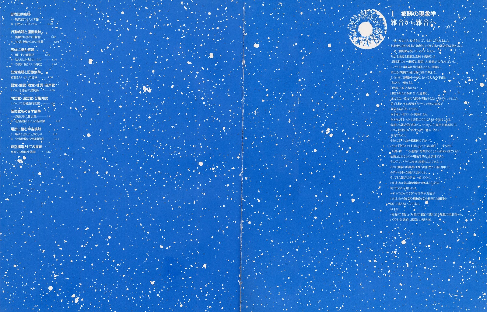 各章ごとに異なる地色が配され、白を背景とする紙面は1ページも無い。めまいするほどに詰めこまれた図像群は、近代デザインの語法が忘れ去ってしまったもの。その一つ一つが、宇宙の森羅万象に眼をとどかせようとする、人類の図像的想像力の結晶である。松岡のテキストが、各図が語る内容を、絶妙に結びつける。
