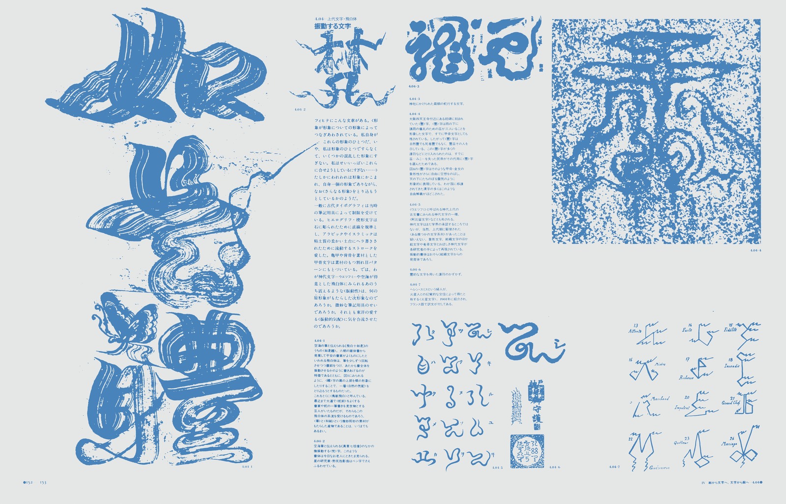 本文レイアウトの背後には、周到に用意されたグリッドシステムが隠れこみ、微細な図像にいたるまで、その大きさ、位置、ネームとの関係……などを支配している。真の意味で、「実験」の名で呼ぶことができる出版物。