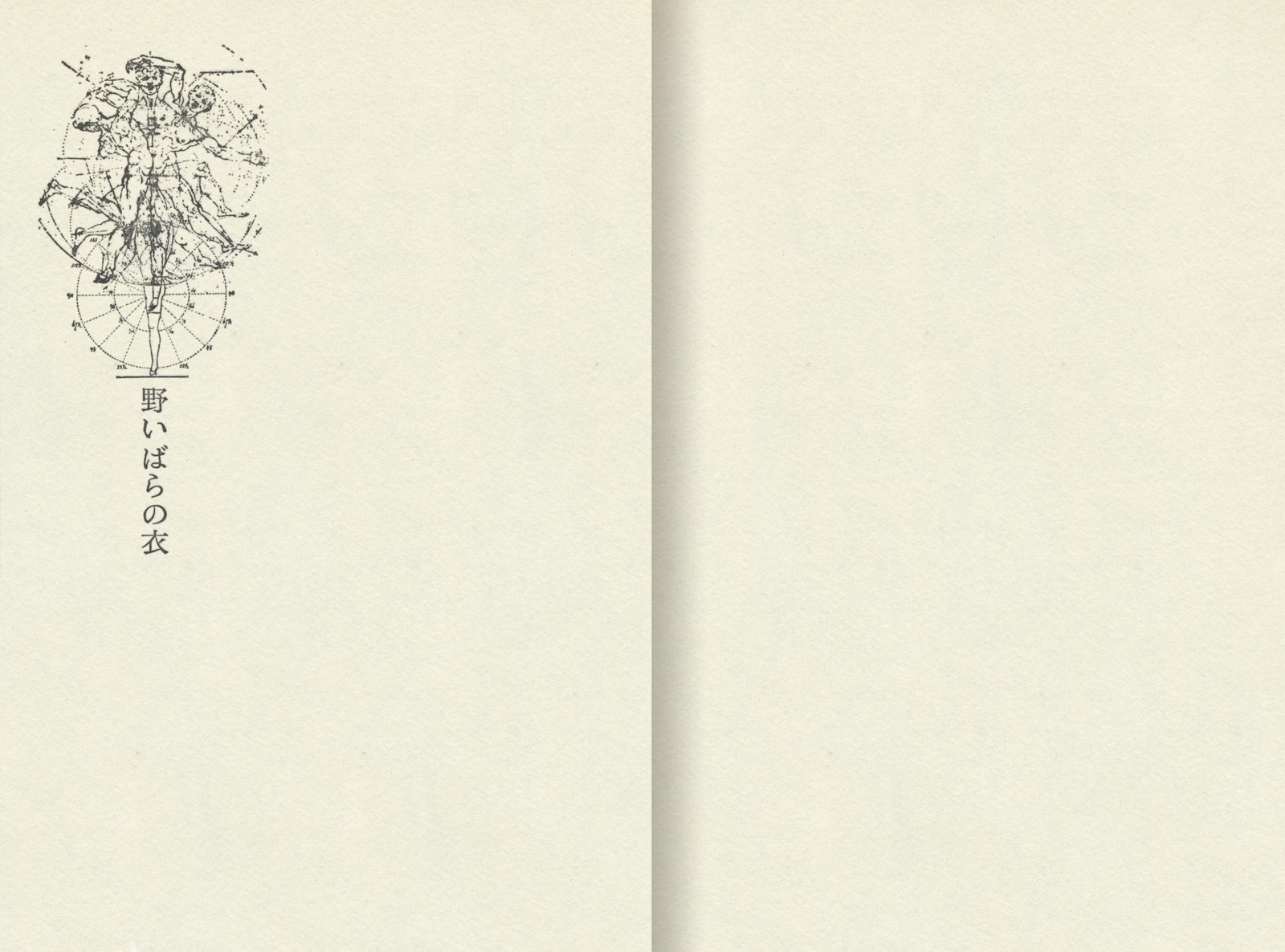 一冊の小説本を、内容にふさわしい一つのイメージのゆらぎ・うつろいで連鎖させ、テキストに絡ませ、溶けあわせる……。 ボッティチェルリのヴィーナス女神像、レオナルドの人体動作分析など、ルネサンス的「完全身体」探究のイコノロジーの重層的展開が、カバー・本表紙・見返しへと連続して、イメージの円環をなす。 杉浦デザインによる、小説本のつくり方を示す典型。 四、脈動する本 文字 |表紙(カバー)から本文へ……(連続) |
