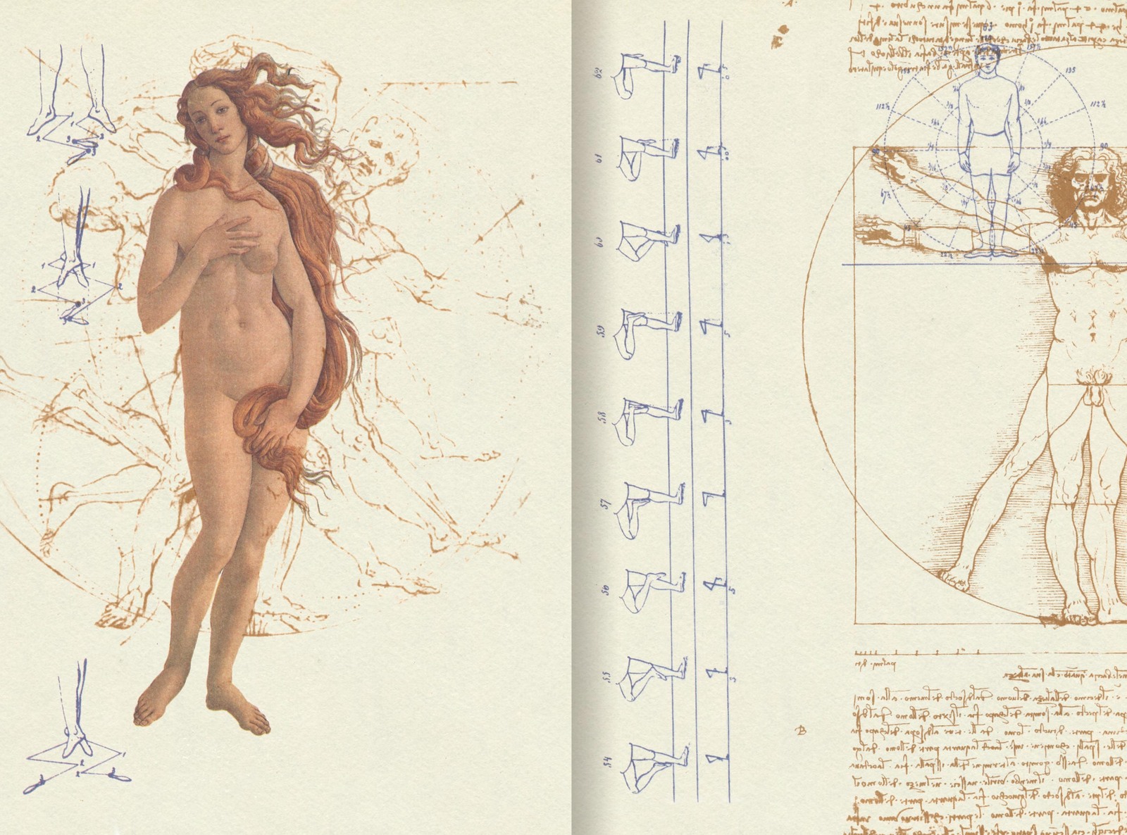 一冊の小説本を、内容にふさわしい一つのイメージのゆらぎ・うつろいで連鎖させ、テキストに絡ませ、溶けあわせる……。 ボッティチェルリのヴィーナス女神像、レオナルドの人体動作分析など、ルネサンス的「完全身体」探究のイコノロジーの重層的展開が、カバー・本表紙・見返しへと連続して、イメージの円環をなす。 杉浦デザインによる、小説本のつくり方を示す典型。 四、脈動する本 文字 |表紙(カバー)から本文へ……(連続) |