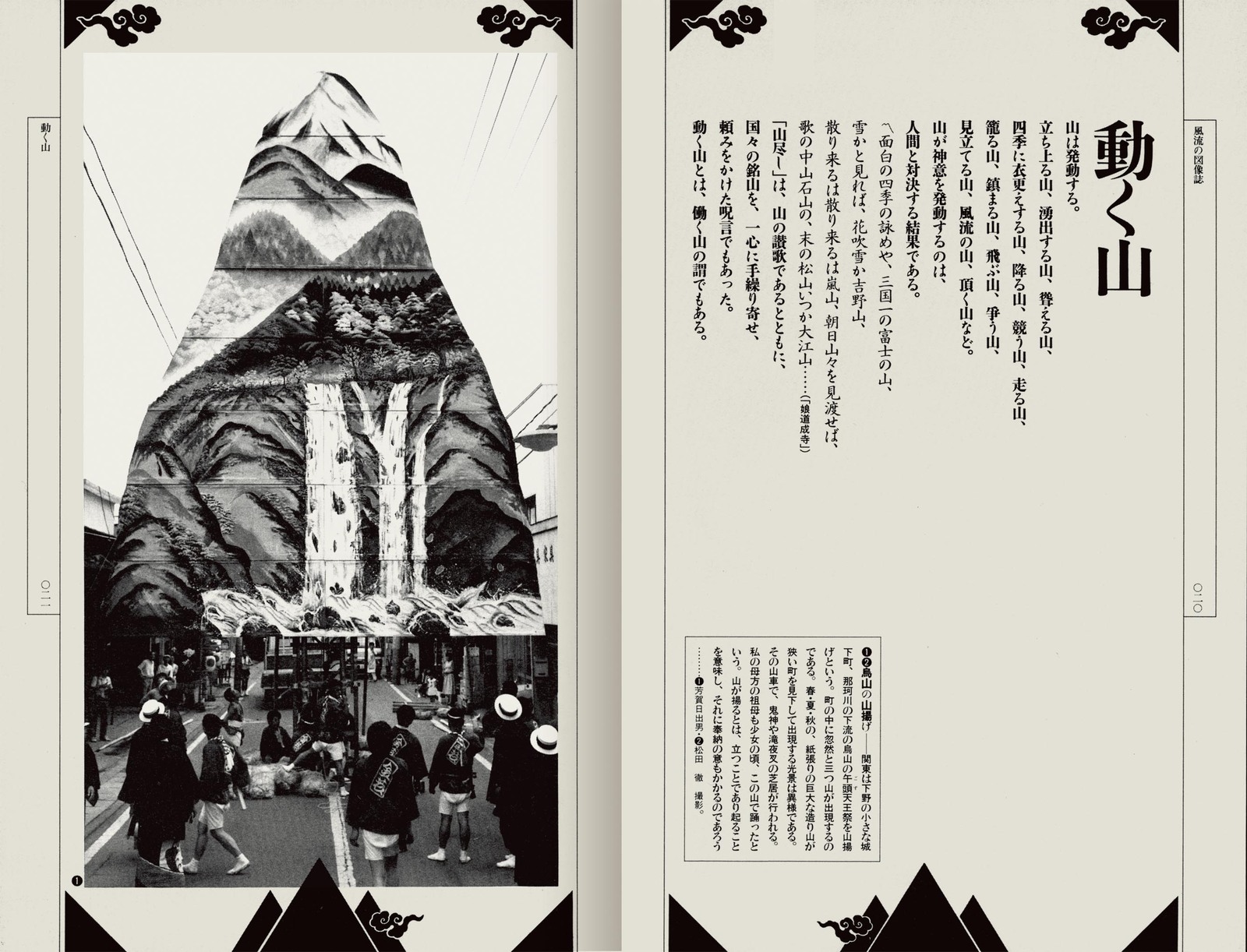 著者は、歌舞伎や芸能史研究の第一人者。この本は、日本人の基層精神文化にまで対象を拡張して考察した、きわめてユニークな「風流」論を展開している。 「三つ山」と瑞雲をあしらう霊山の文様が、カバーから本文にいたるまでイメージ枠として配されている。古来から人々の心にひそむ、天を仰ぎ見る魂の運動性を象徴するもの。 著者自身が取材・収集した写真資料をふくむ、数多くの図版が、見るものの想像力の跳躍を喚起する。 協力=赤崎正一 四、脈動する本五、ノイズから生まれる 文字|図像+テキスト(絵物語りを生みだす) |