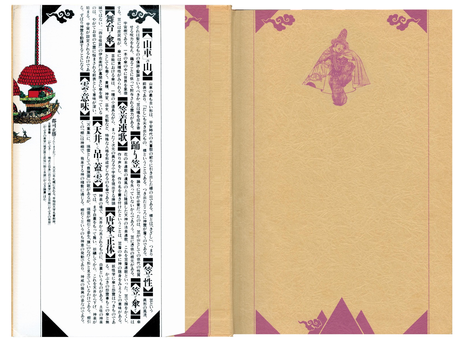 著者は、歌舞伎や芸能史研究の第一人者。この本は、日本人の基層精神文化にまで対象を拡張して考察した、きわめてユニークな「風流」論を展開している。 「三つ山」と瑞雲をあしらう霊山の文様が、カバーから本文にいたるまでイメージ枠として配されている。古来から人々の心にひそむ、天を仰ぎ見る魂の運動性を象徴するもの。 著者自身が取材・収集した写真資料をふくむ、数多くの図版が、見るものの想像力の跳躍を喚起する。 協力=赤崎正一 四、脈動する本五、ノイズから生まれる 文字|図像+テキスト(絵物語りを生みだす) |