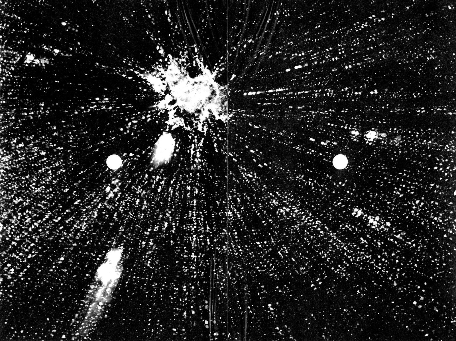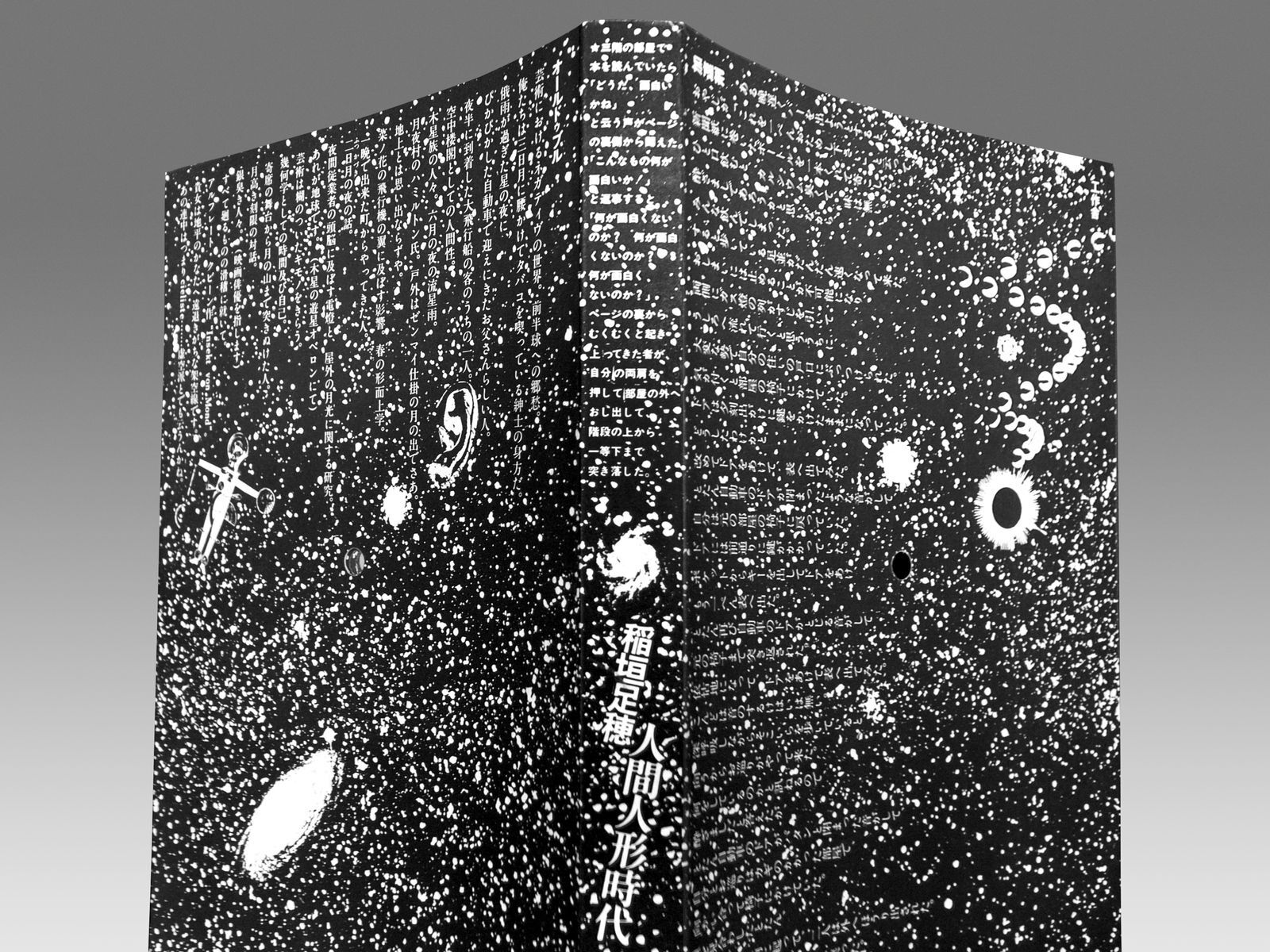 松岡正剛が編集し、杉浦がデザインしたオブジェ・ブック。著者の「人間=腔腸動物」説にしたがい中心に一つの孔を穿たれて、腔腸動物化した本となる。この孔は同時に、表紙の背景を包みこむ宇宙空間のブラックホールにも見立てられた。 本表紙の背に収まった、極小短篇の書きこみや、初版刊行時の1975年に、定価を1975円にした……ということなど随所に楽しい仕掛けが隠されている。 ブリキオモチャのオブジェ図像が浮遊する、第1部。マイブリッジと宇宙線が交錯する、第2部の本編。第3部「宇宙論入門」には、宇宙百科がちりばめられる……。 全ページにあふれる遊戯的過剰は、星屑を愛する著者の想像力にそったもの。ノイズにみちた銀河大宇宙の中に、浮遊する。 小説「人間人形時代」の組版を囲むマイブリッジの連続写真。フリッカー仕掛けでマルチスクリーン動画を生成する。 宇宙線の軌跡がオーバーラップし、動く身体を透過する。 協力=中垣信夫+海保透 五、ノイズから生まれる カバー表紙|(ショート・ショート)吹きよせ 本文|(フリッカー(動き)) |