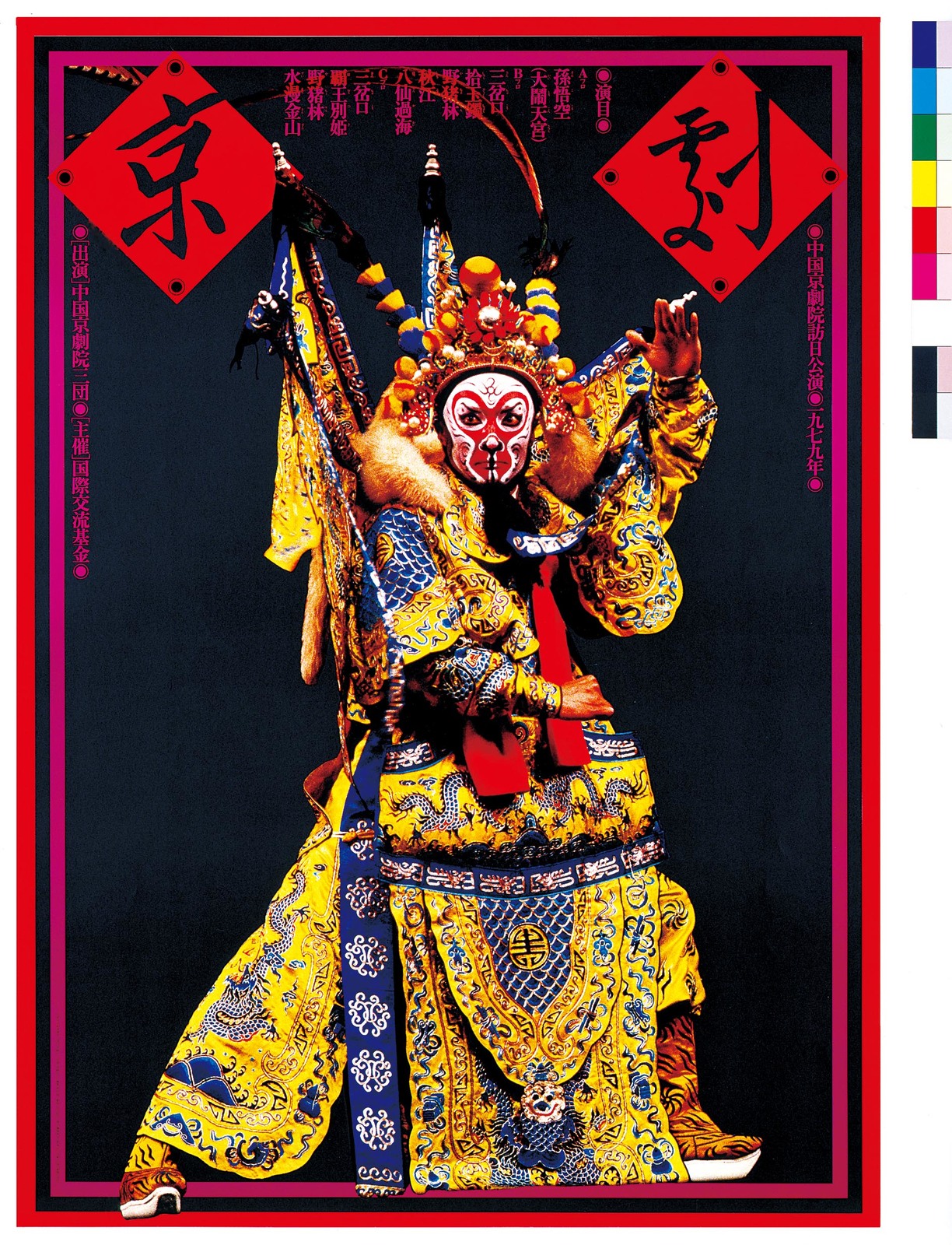 1979年に初来日し、日本の観客に大きな感動をあたえた、中国京劇団。 杉浦は、国際交流基金が主催するこの公演の広報デザインの一切を担当し、メディアを越えた統合的なデザインワークを行なった。中国的な色彩あふれる躍動感と伝統的な中国の出版物の風味を対比させ、黄・赤・黒を基調色とする大胆なデザインを提示し、人びとを驚かせた。 公演の反響は大きく、さまざまな話題を呼び、富山治夫が全力を傾けて撮りあげた舞台写真集や京劇衣裳集、公演記録のLPレコードなどが相次いで刊行された。 京劇プロジェクト協力=鈴木一誌+赤崎正一+海保透+谷村彰彦+杉浦冨美子+郡幸男 八、アジアンデザイン |