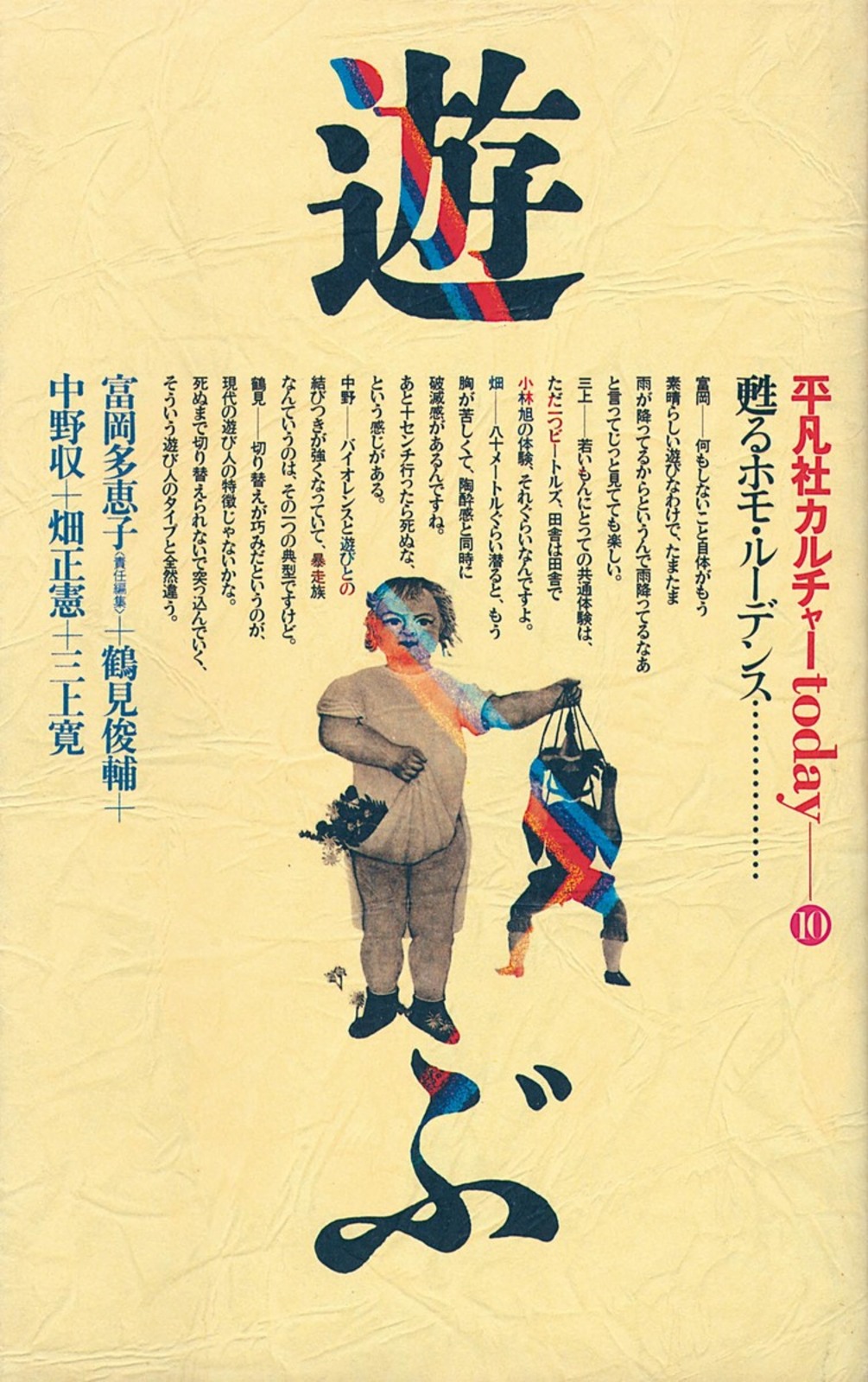 「10の動詞」をテーマとして編集された、10冊のディスカッション・ドラマ。多彩な論客たちが一堂に会し、1980年代初頭の日本社会のあり方を重層的な視点で切り取ってゆく。対論後の感想を記す、各人のエッセイが加えられた。カバーは、キ・アカ・アイの3色刷り。3色の刷り重ねで黒色を生みだす。この黒色(インクによる減色混合)から各色を削りだす独特の手法による「虹色の滲み」がカバーの表、背、裏など、随所に出没する。動詞テーマを生き生きと増殖させるイメージ(図版ページ)が本文ページに等間隔で挿入され、各冊の小口にリズミカルな繰り返しの黒オビ文様を出現させる。 デザイン協力=赤崎正一 二、ゆらぎ・うつろう シリーズ全集|(リズム)を生み出す カバー表紙|(表紙―背―裏表紙)図形+文字 カバー表紙|(色を削りだす)削り |