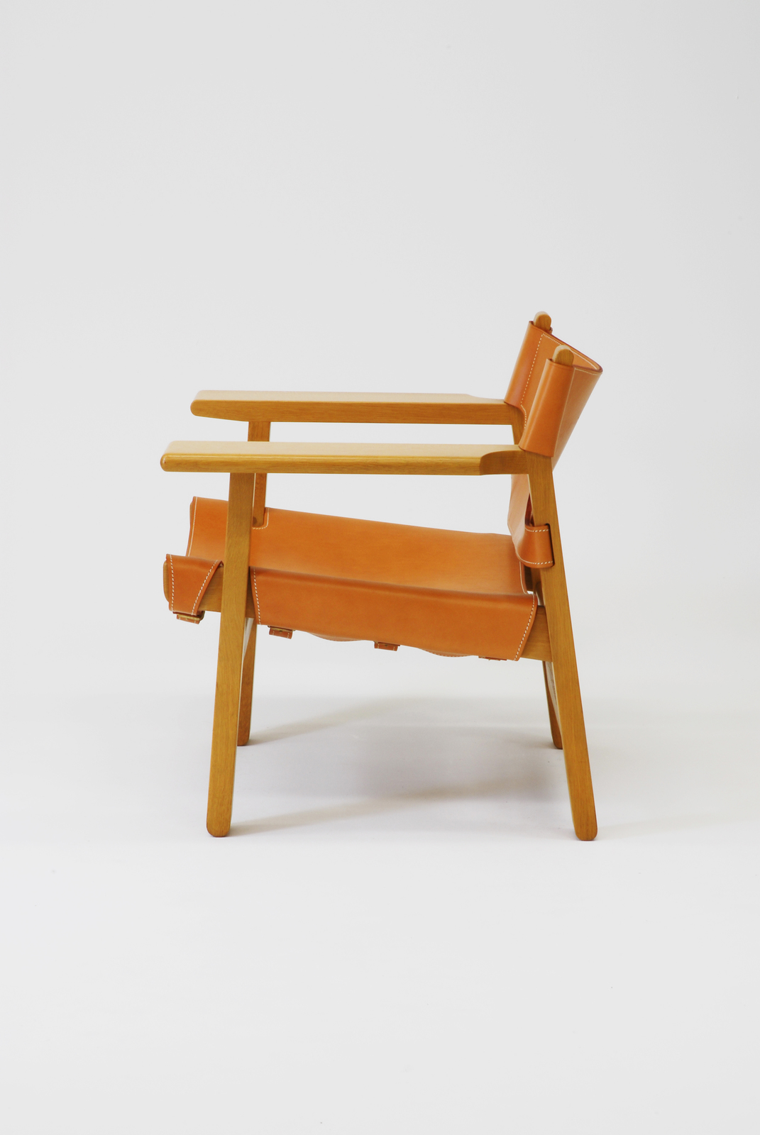 モーエンセンが「F.D.B」からフリーになったあとにつくった椅子である。背と座がそれぞれ厚い一枚革でつくられたスペインの椅子をリデザインしたものである。リデザインをするときに大切なことがらは2つあり、1つは今日の技術を用いつつ品質を落とさないこと。2つ目は今日の生活にあわせて機能的に使いやすくすることである。モーエンセンは2つのことを忘れずにリデザインしている人物であるといえるだろう。アームは小テーブルとして使うことができ、また革は伸びてもベルトで調節できるようになっている。