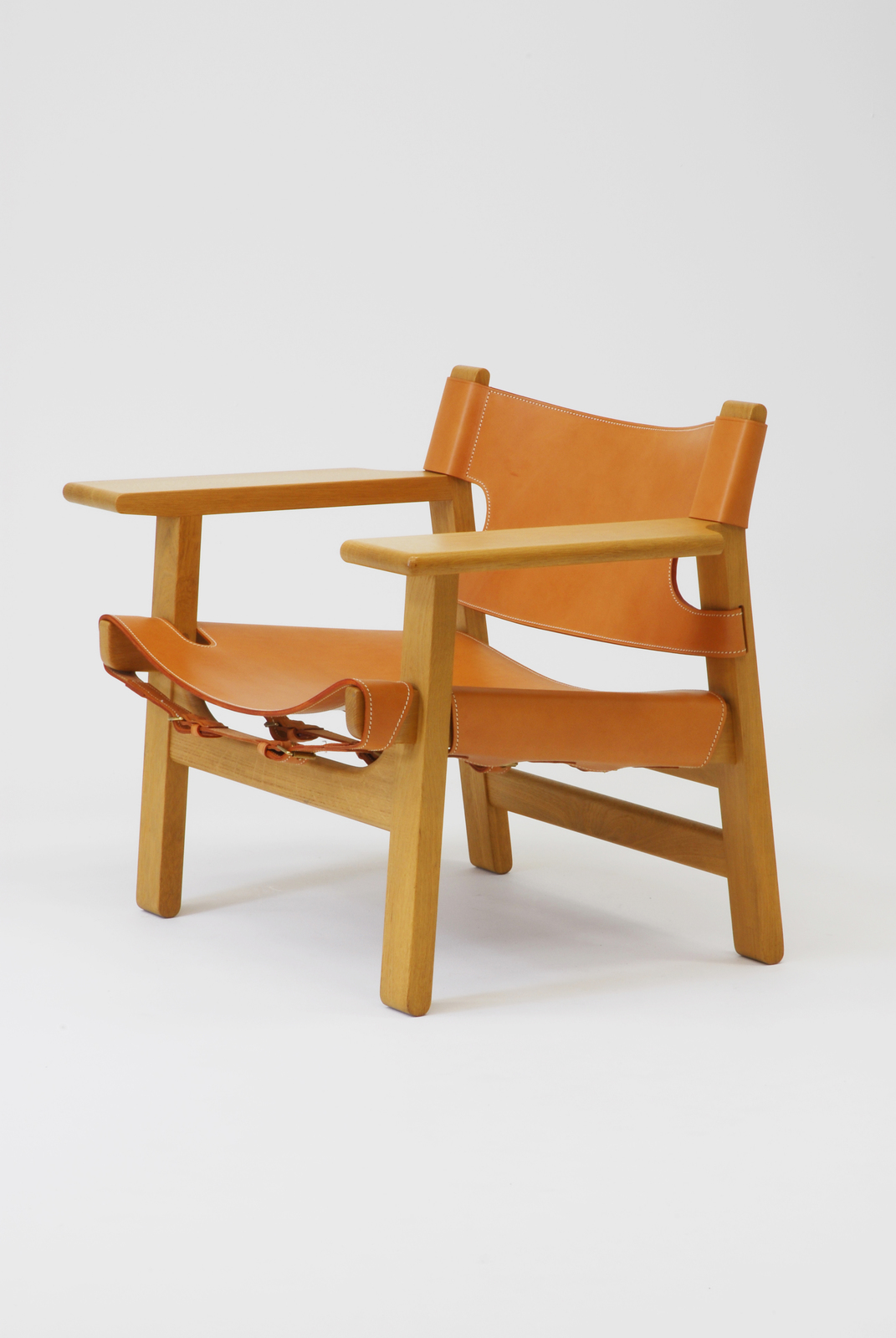モーエンセンが「F.D.B」からフリーになったあとにつくった椅子である。背と座がそれぞれ厚い一枚革でつくられたスペインの椅子をリデザインしたものである。リデザインをするときに大切なことがらは2つあり、1つは今日の技術を用いつつ品質を落とさないこと。2つ目は今日の生活にあわせて機能的に使いやすくすることである。モーエンセンは2つのことを忘れずにリデザインしている人物であるといえるだろう。アームは小テーブルとして使うことができ、また革は伸びてもベルトで調節できるようになっている。