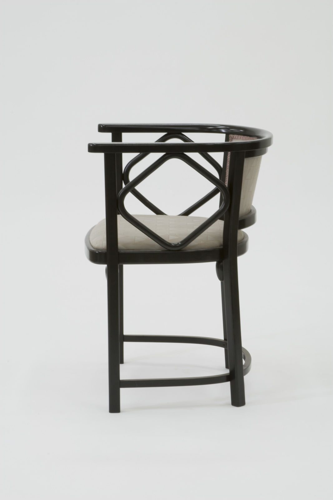 材質、構造についてはフレダーマウスとほぼ同じである。異なる点は背中の笠木が延長されアームになっており、そのアームには四辺形の補強材が入れられていることである。座枠と脚のとめ方は前脚と後脚を少し欠き込んで、その部分に座枠を差し込み、内側からボルト締めしたものである。そのためにずれない構造となっている。アームを補強する斜行した四角いパーツのジョイント部も木ねじが使用されている。なおこの椅子に使用されている特徴あるデザインの布地は、バックハウゼン社のものである。