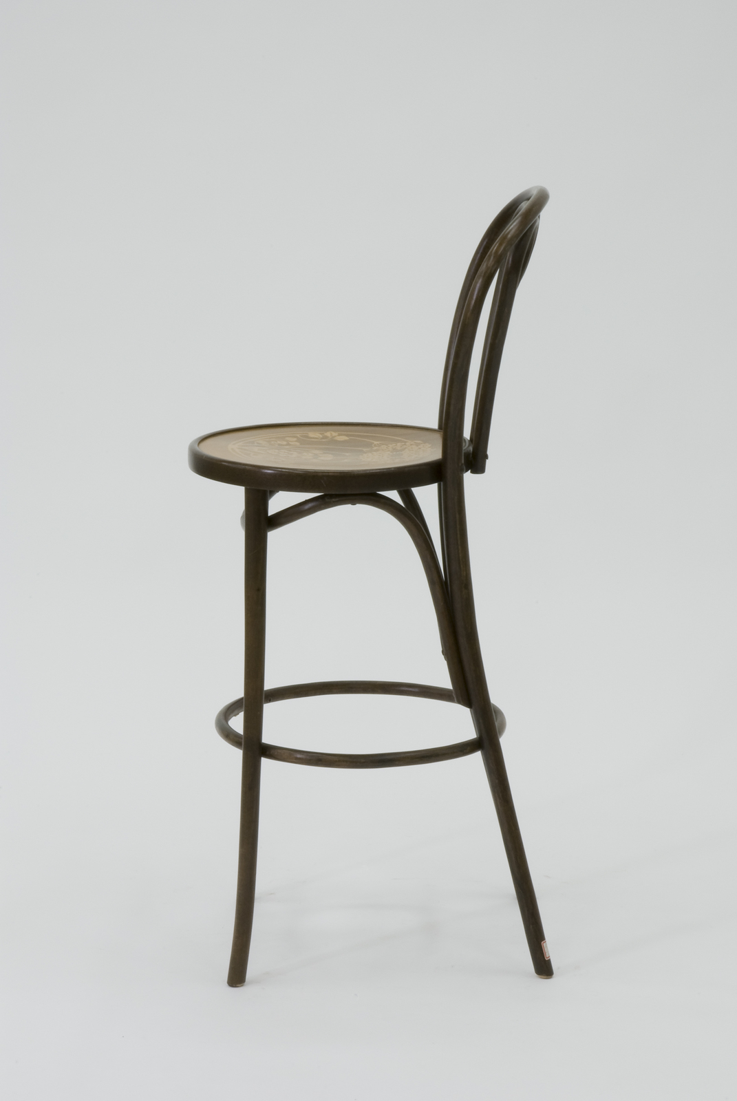 第1次世界大戦前まで、ウィーンを首都として現在のオーストリア、ハンガリー、チェコ、ユーゴスラビアなどの国々はオーストリア・ハンガリー帝国という1つのだった。トーネット社の工場はこの地に幾つも建てられ、それぞれの工場で様々な椅子がつくられた。この椅子を含む1910年代につくられたハイスツール、バースツール、ハイチェアは主としてポーランドの工場でつくられたものである。この椅子も座に焼き印を押して装飾的効果を出している。トーネット社の曲木椅子は、カタログに掲載されているパターン以外にも、注文に応じて様々なバリエーションがつくられた。このスツールもスタンダードのカタログには掲載されていない。