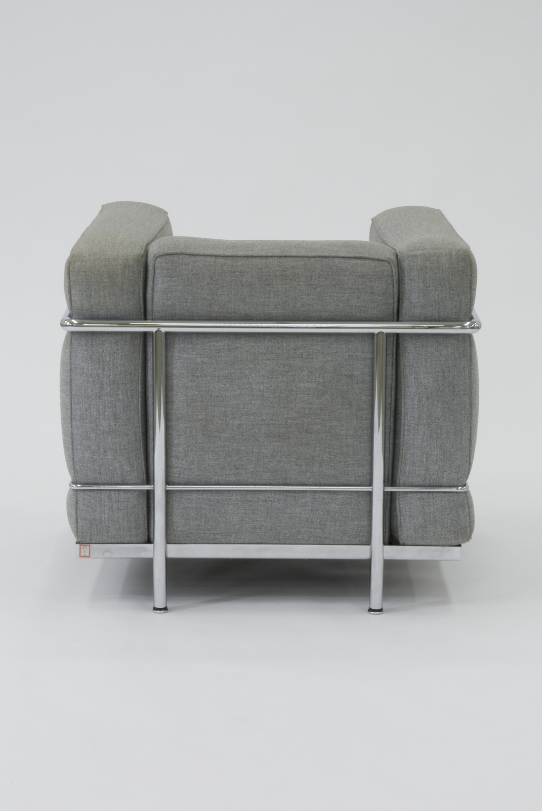 この椅子は、座に2個、アームに2個、背に1個の5個のクッションを金属のフレームにはめ込むという単純な構造でつくられている。金属のL字型鋼でできた座枠にゴムのウェービングベルトを市松に張ってフックで留め、その上にクッションをのせている。横から見ると、アームのクッションを支えている金属パイプには、太さが異なるパイプが使用されている。アームと背が同じ高さになっていて、実際に座ると若干アームが高く感じるが、体全体がすっぽり収まるような座り方をすると心地良い椅子である。